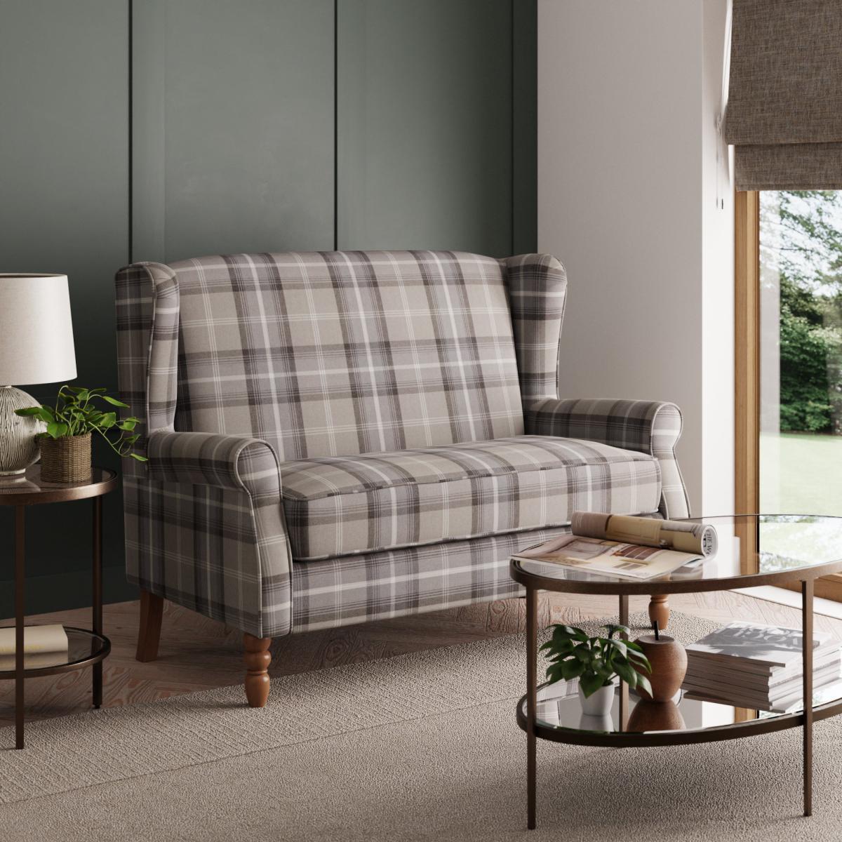 I love this little sofa for its versatile and timeless style. Its compact size makes it ideal for smaller living spaces or as an accent piece in a larger room. The grey and white check pattern adds visual interest without overwhelming the space, making it suitable for both classic and contemporary interiors. To style it effectively, pair it with neutral tones or soft pastel accessories, and consider adding colourful cushions to personalise the look. It works well in cosy dens, country cottages, or modern city flats, particularly when paired with wooden or metal accents to add warmth or contrast. Practical tips include keeping it uncluttered and using textured accessories to enhance its comfort and visual appeal.