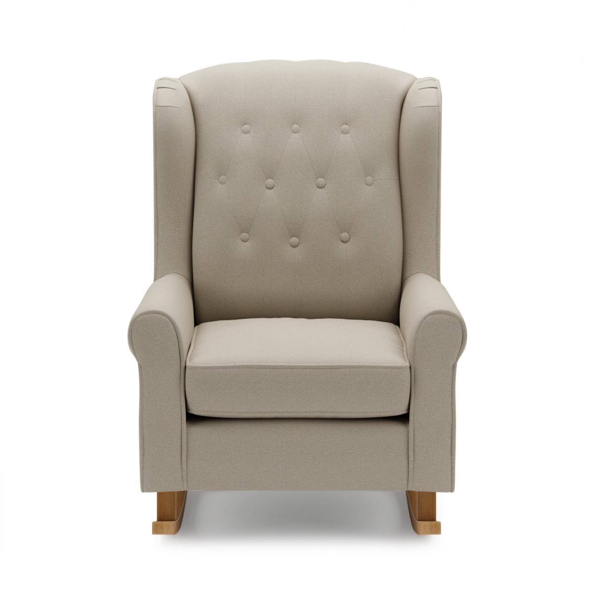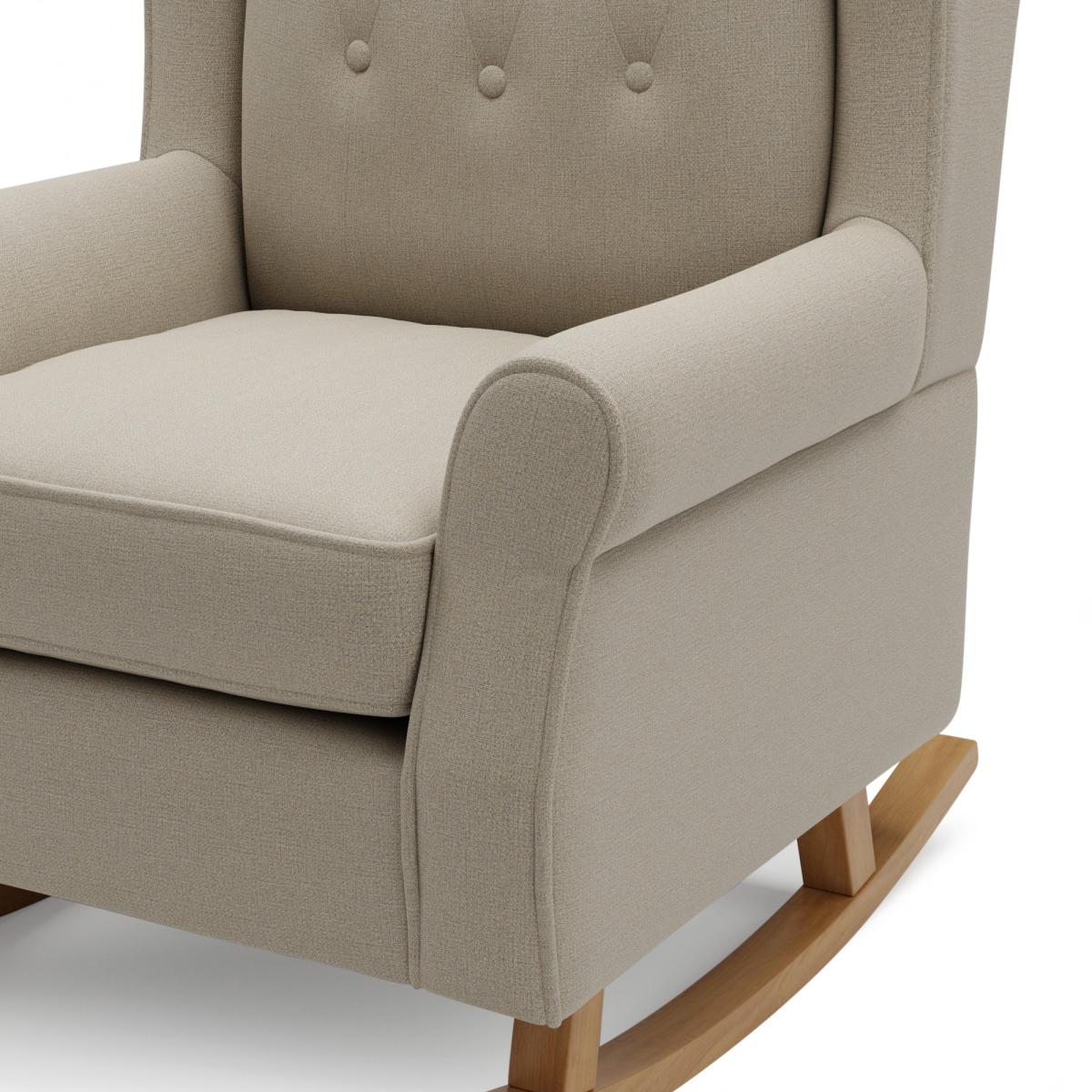 Upholstered in a faux wool fabric, the classic Oswald armchair is designed to offer luxurious comfort, with its foam and fibre filled cushions, and supportive pocket sprung seats. Offering an elegant curved design, this timeless armchair features a wingback design with scrolled arms and stunning piped edge detailing. The timber rocking legs add a gentle rocking motion to your wing chair, ideal to help your bub drift to sleep and possibly you too.