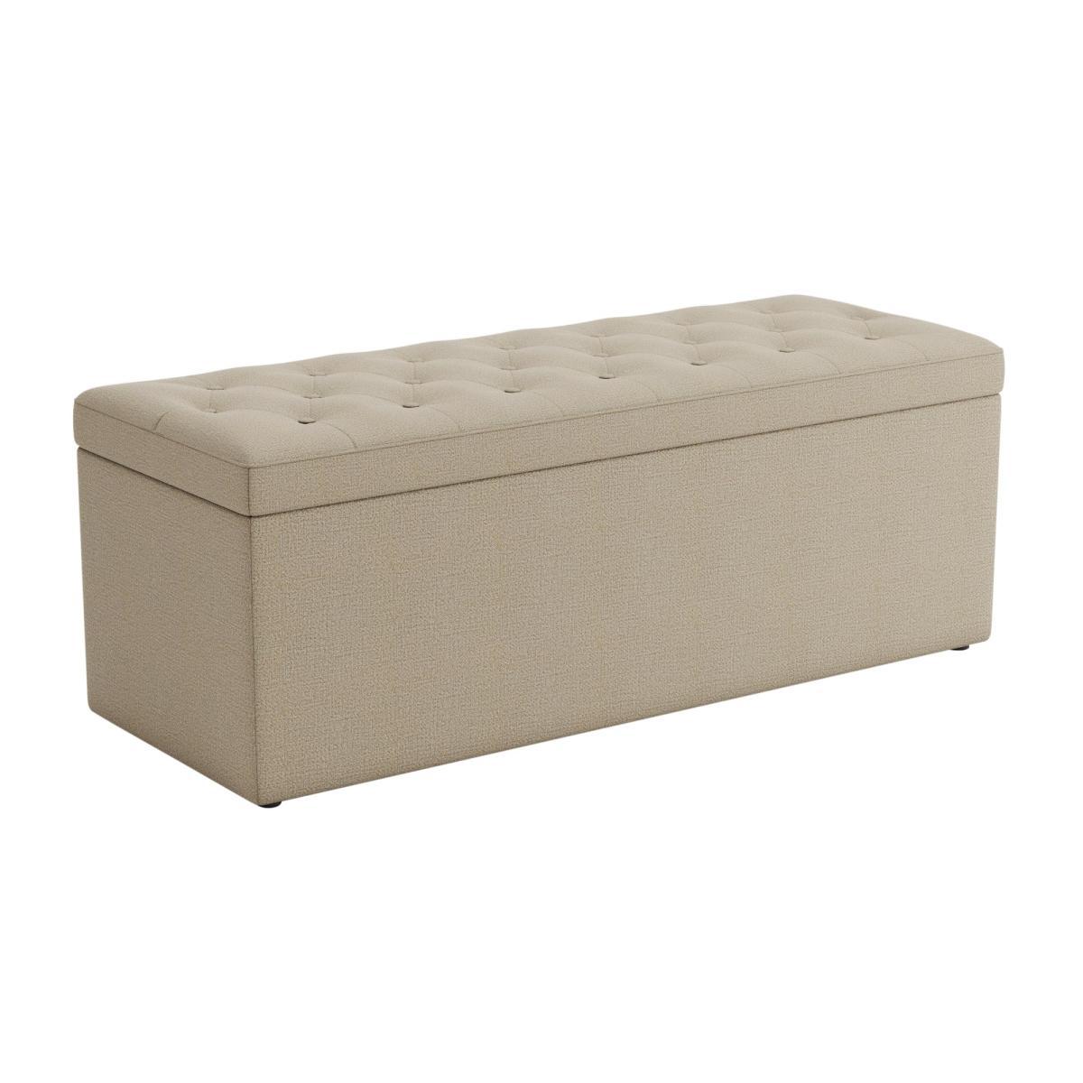 Oswald Faux Wool Buttoned Ottoman Bench Natural