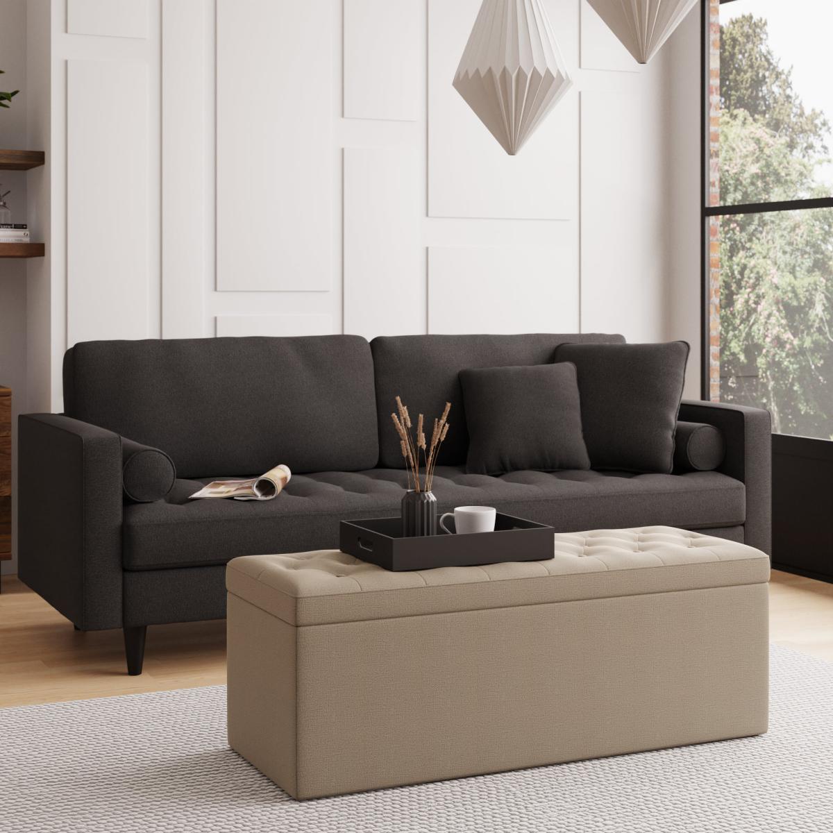I really like this ottoman bench because its faux wool buttoned design adds a subtle touch of texture and understated elegance, making it versatile for various interiors. It works particularly well in contemporary or minimalist spaces as a practical extra seating or a coffee table alternative. In more traditional settings, it can add a modern twist without overpowering the decor. To style it effectively, try pairing it with a range of cushions or a tray on top for organising accessories, or layer it with a soft throw for a cosy, inviting look. Its neutral hue makes it easy to coordinate with different colour schemes, and it’s a great piece for creating a flexible, functional living space.