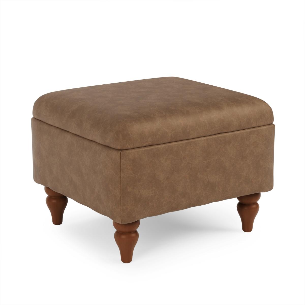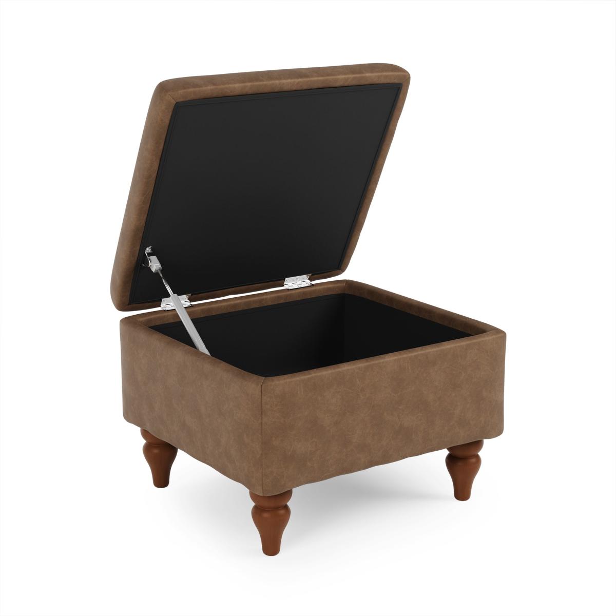 Oswald Mocha Faux Leather Storage Footstool Tapered Leg Brown
