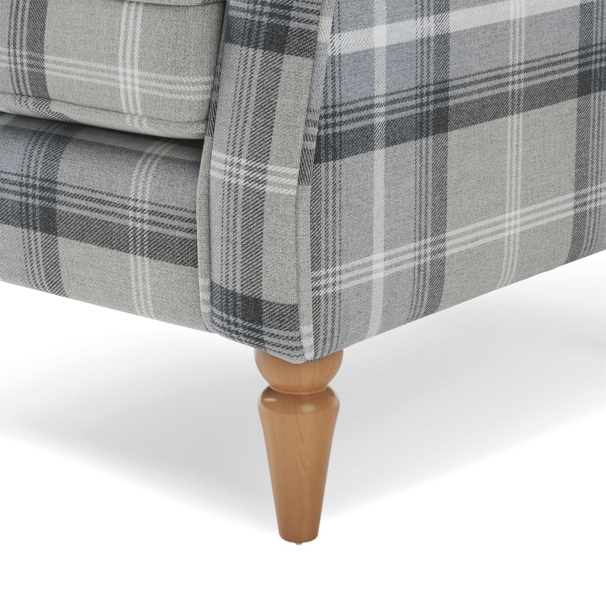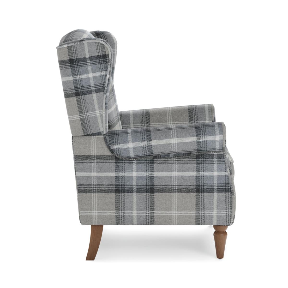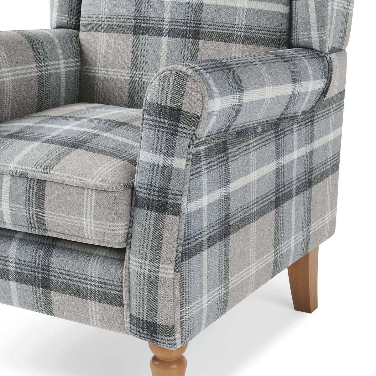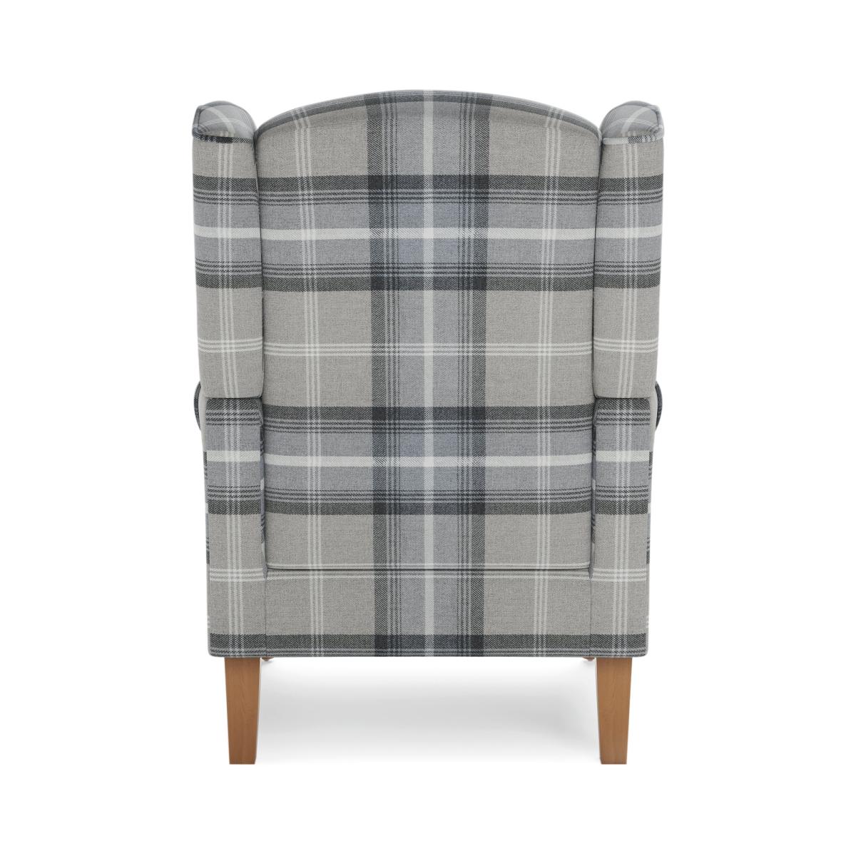 Sit back and relax in the classically designed Oswald Grande armchair, crafted with foam and fibre filled cushions, pocket sprung seats and a high back for additional support. With its timeless wingback design, scrolled arms and oak finished wooden legs, this armchair would suit a range of rooms and styles. This generously proportioned armchair has been upholstered in a smooth, checked woven fabric with a stunning piped edged detailing.