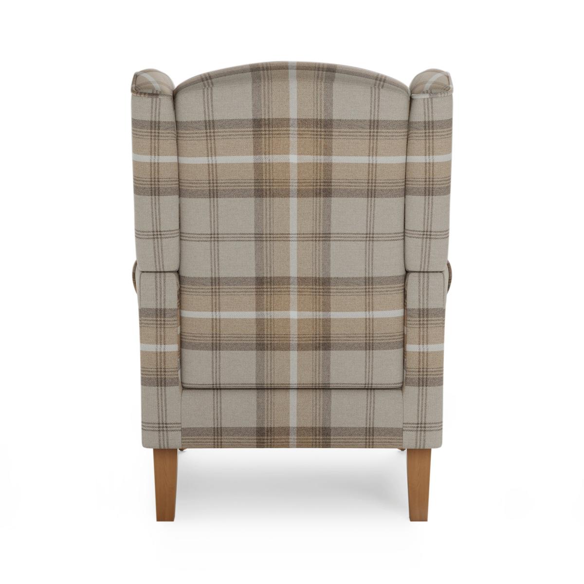 Sit back and relax in the classically designed Oswald Grande armchair, crafted with foam and fibre filled cushions, pocket sprung seats and a high back for additional support. With its timeless wingback design, scrolled arms and oak finished wooden legs, this armchair would suit a range of rooms and styles. This generously proportioned armchair has been upholstered in a smooth, checked woven fabric with a stunning piped edged detailing.