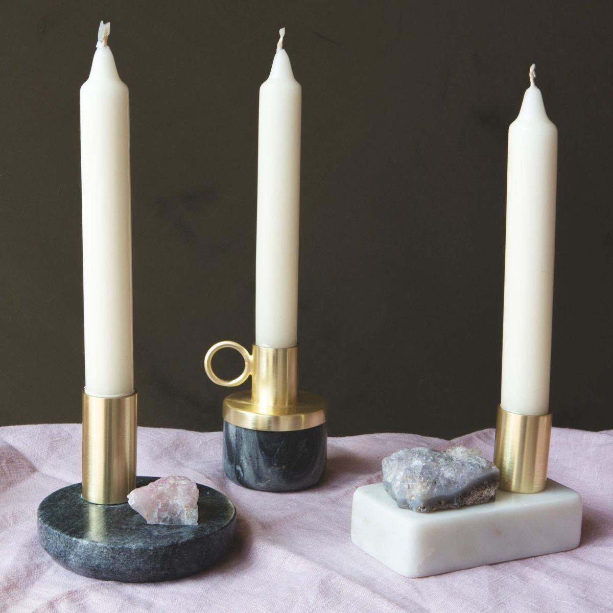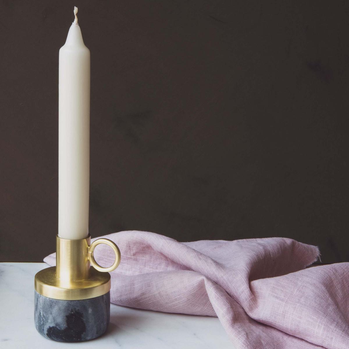 Simple yet sophisticated, this weighty candle holder is handmade from smooth black marble and stainless steel. With an antiqued brass finish this stylish candle holder features a practical ring for carrying.