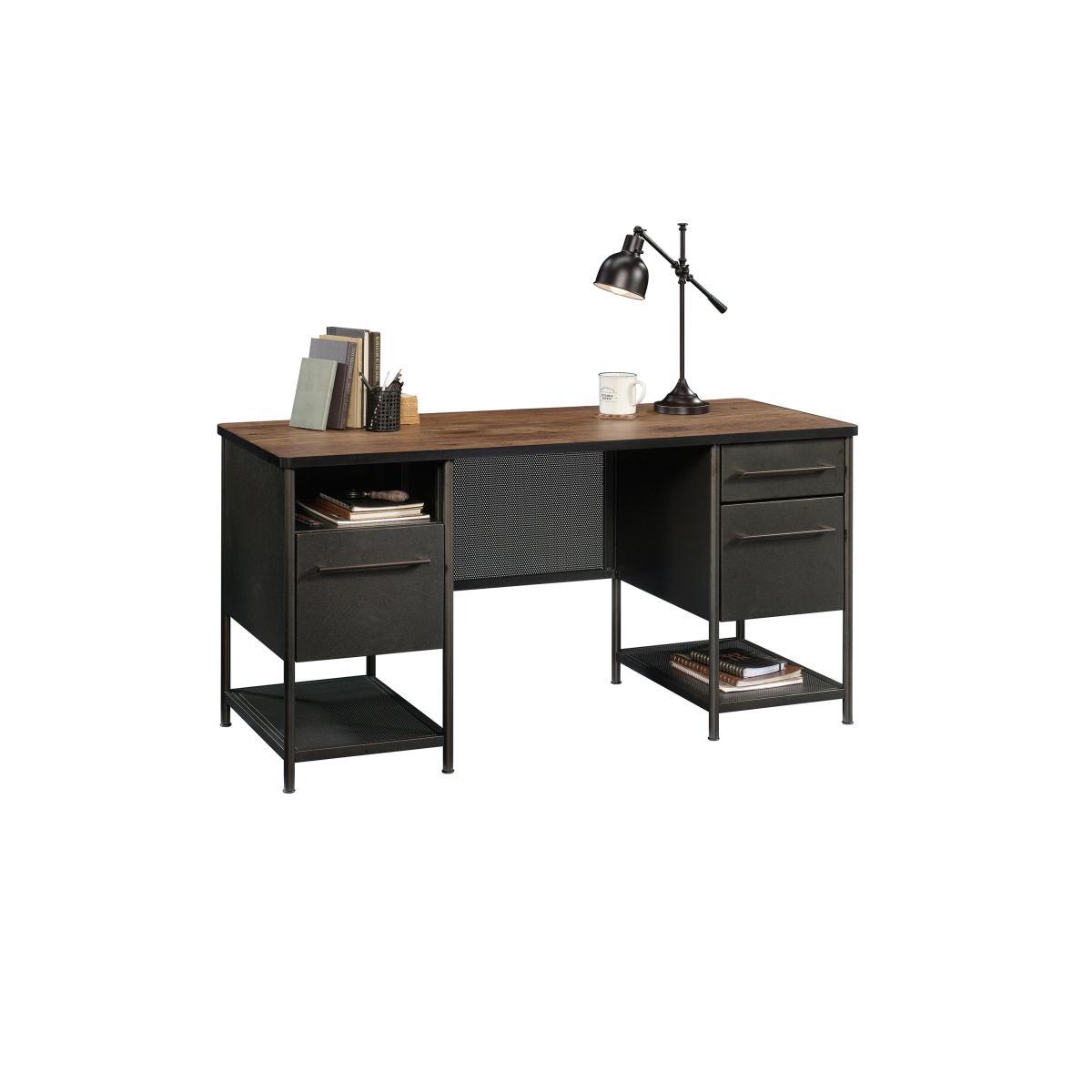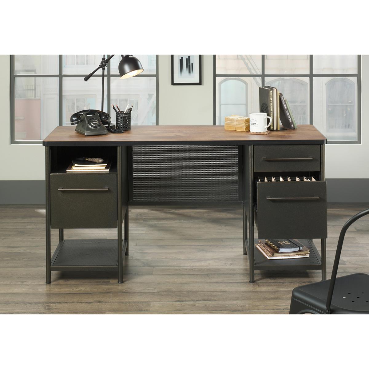 On- trend and modern, urban industrial style A storage- focused workstation Durable powder- coated metal frame The Otis Standard Desk is where beauty and function meet. It effortlessly pairs an urban, industrial style with a host of clever storage areas that make working at this desk feel like anything but work. Theres ample storage room for files, paperwork and books, and everything is within arms reach, from the spacious lower shelves to the hanging file drawers. The large tabletop provides a generous workspace with additional room for a laptop, stationery and more. A perforated metal panel and graphite, powder- coated metal frame beautifully accents the large vintage oak effect tabletop while the 360- degree finish allows you to place this stunning desk anywhere in your office space. The Otis Standard Desk is part of the thoughtfully designed, industrial Otis range, offering a selection of stylish, storage- savvy pieces that meet the demands of modern life and modern dcor. This product requires self assembly. Its simple self- assembly means two people can have this well- designed desk ready to go in just 1 hour. Please remember it is important to follow the assembly instructions precisely. Lines are open Monday to Friday, 9am to 5pm. WARNING! Furniture can tip over unexpectedly and cause injury. This item must be fixed to a wall using the anti- tip kit provided. Be sure to use the correct wall fixings suitable for the walls in your home. Furniture Village is not able to fix anti- tip devices for you. Seek professional advice if you are unsure.