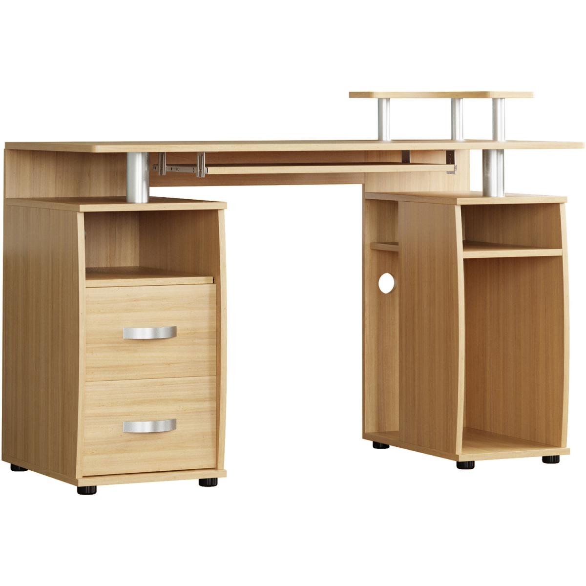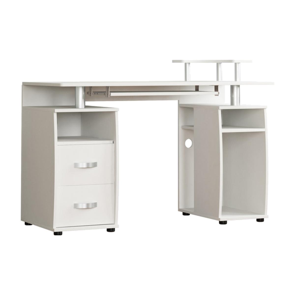 A great choice for your home office, the Otley 2 Drawer Computer Desk combines practicality and style in a modern, space-optimising design. Featuring two drawers, a pull-out keyboard shelf, raised corner shelf, and a designated cubby for your desktop PC, this unit is great for studying, working, and more. Finished with sleek metal handles and a cable tidy hole, this is the perfect workstation for your space.