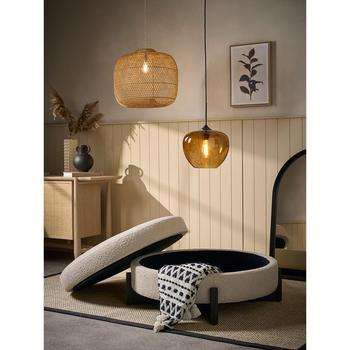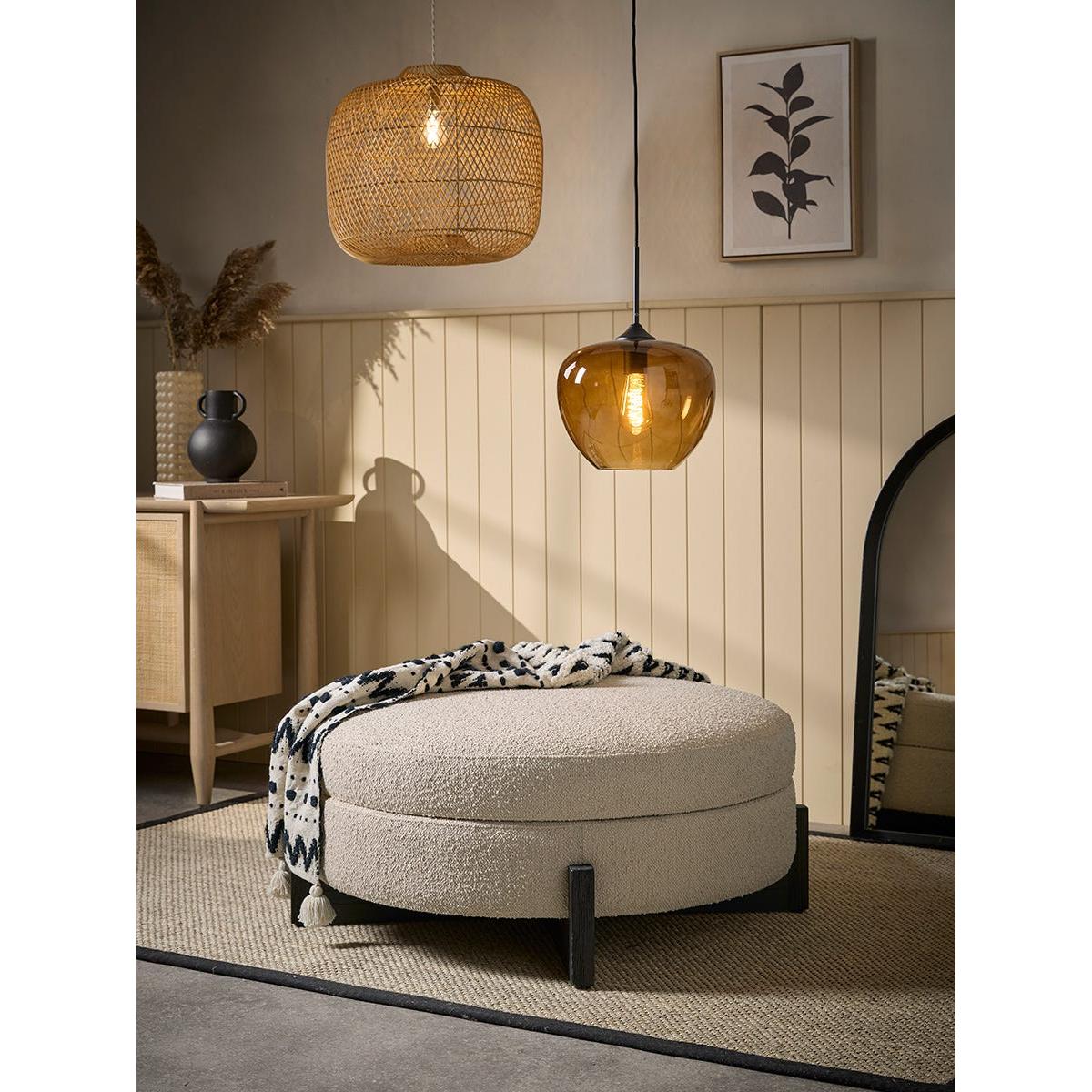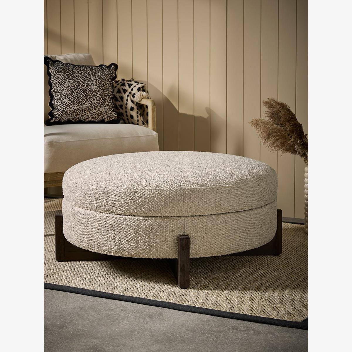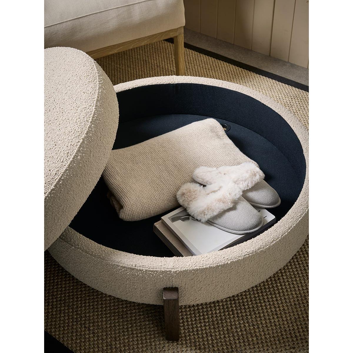 With a boucle-like texture, this ottoman brings comfort and a cosy energy to your home. With plenty of space to store things like extra throws, for when you need to wrap up in many layers as the cold weather rears its head, its simple circular frame is supported by dark ash legs, creating a modern and sleek finish.