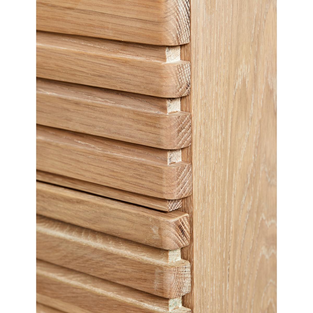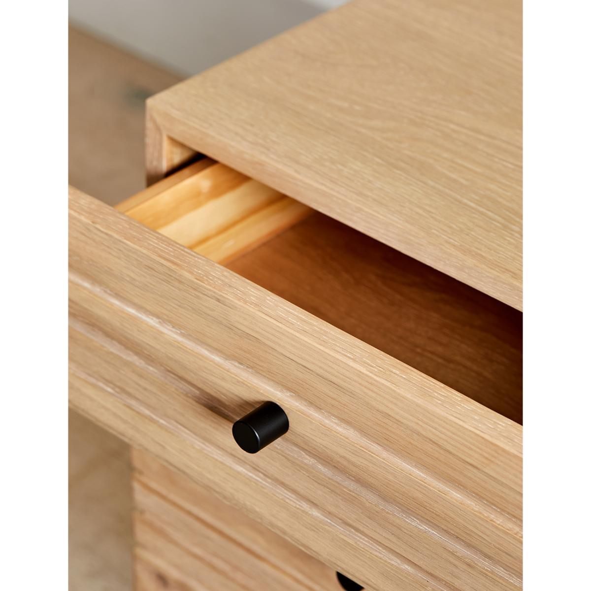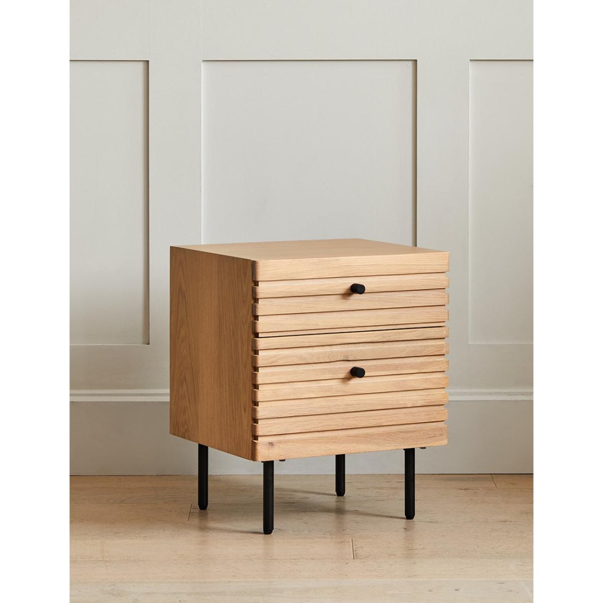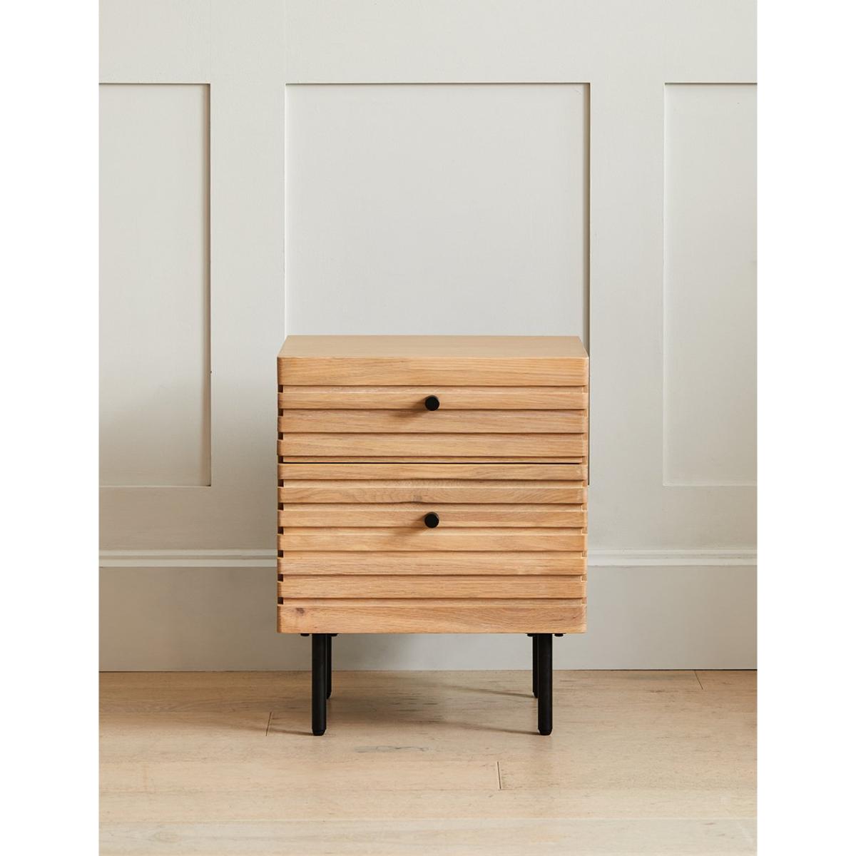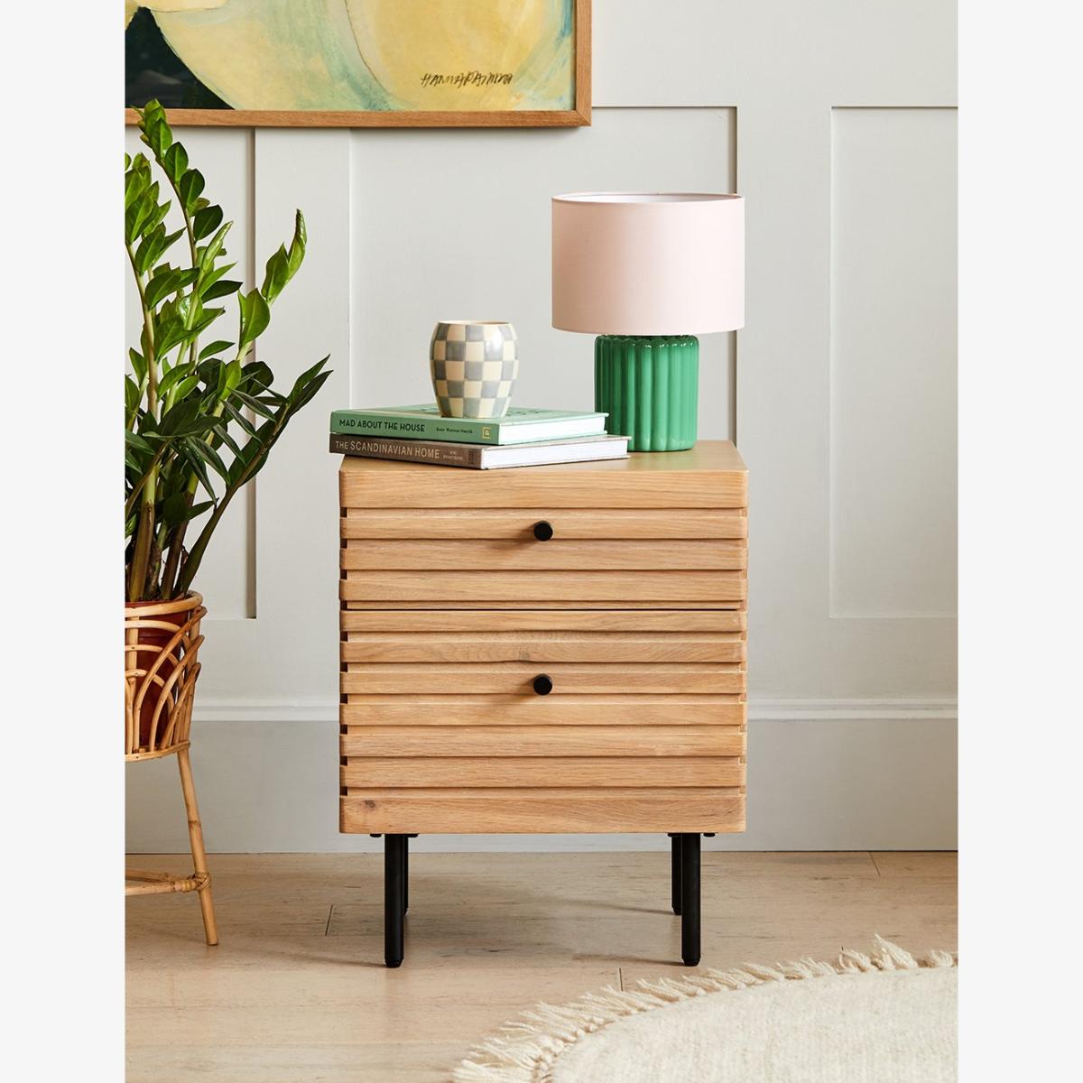 This simple yet stylish bedside table can also be used as a side table in a reception room. We love the two drawers for storing away clutter and the slatted  fronts of the drawers for a subtle design detail. Style with the rest of the Okayama collection.