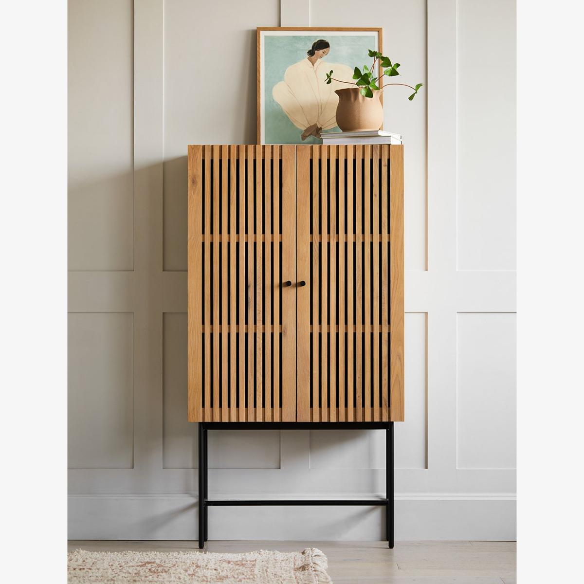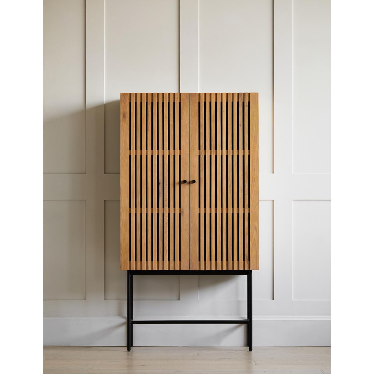 This stylish yet timeless cocktail cabinet is perfect for storing glassware and drinks, although you could also use it in other areas of your home for other storage needs. We love the slatted wood doors and the contrast between the oak and the black metal legs. This collection also features a coffee table, a sideboard, a media unit and a chest of drawers.