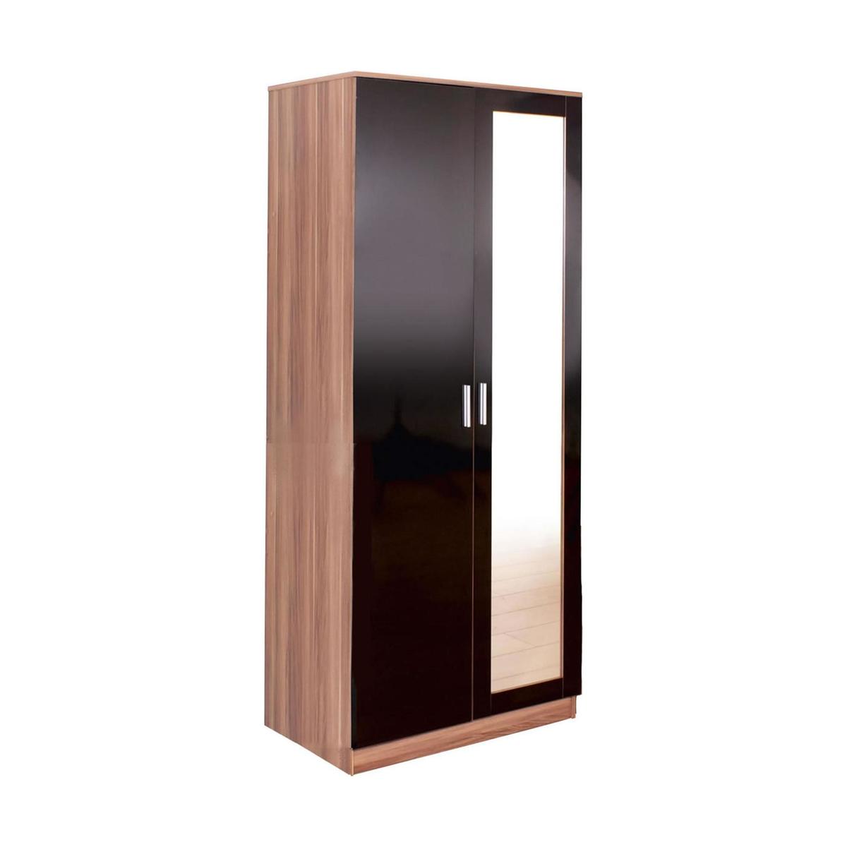 Ottawa Black and Walnut 2 Door Mirrorred Wardrobe Natural