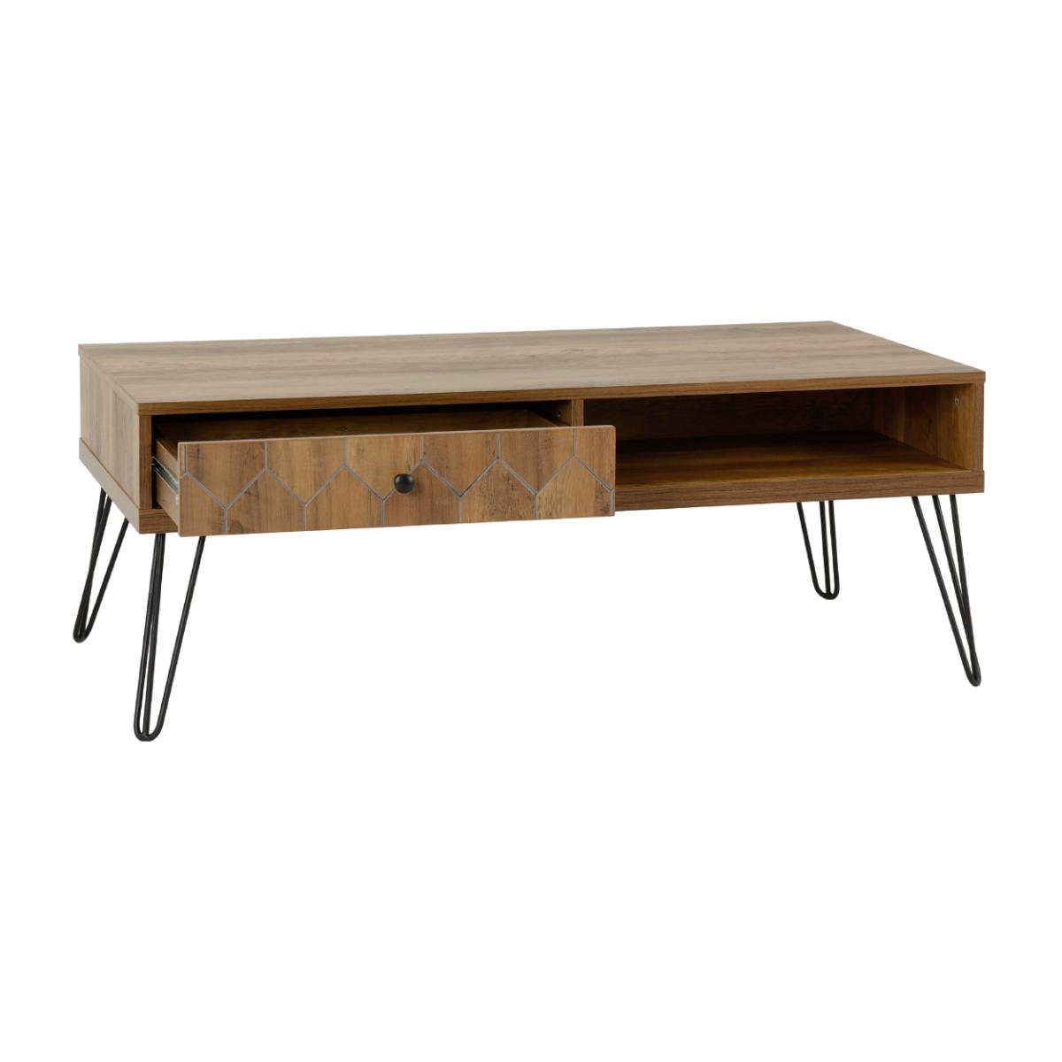 Ottawa Oak Effect Coffee Table. The Ottawa coffee table has a beautiful oak effect finish giving this luxurious coffee table a classic look. Complimented with hairpin style legs, this table will add a touch of character and look great in any home.