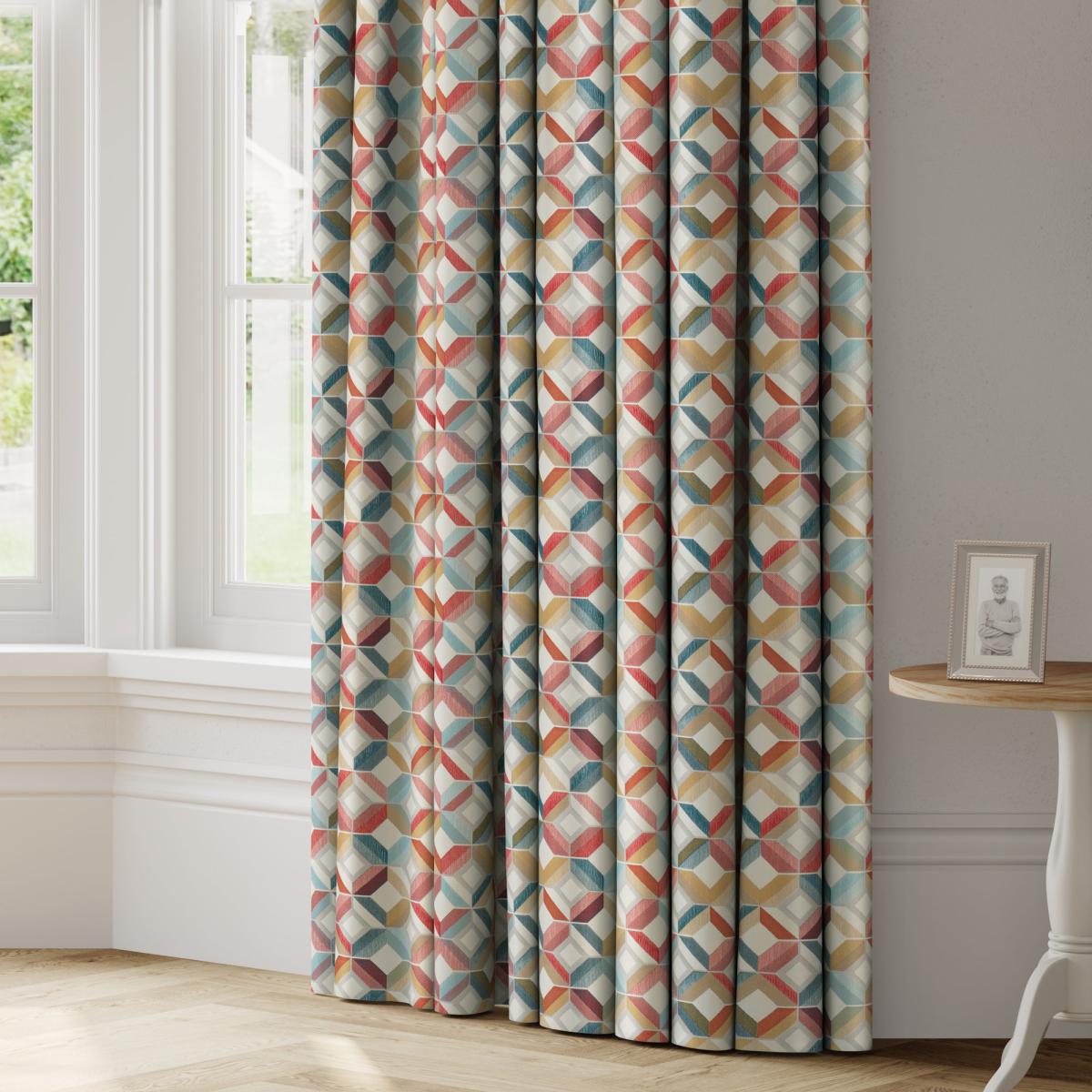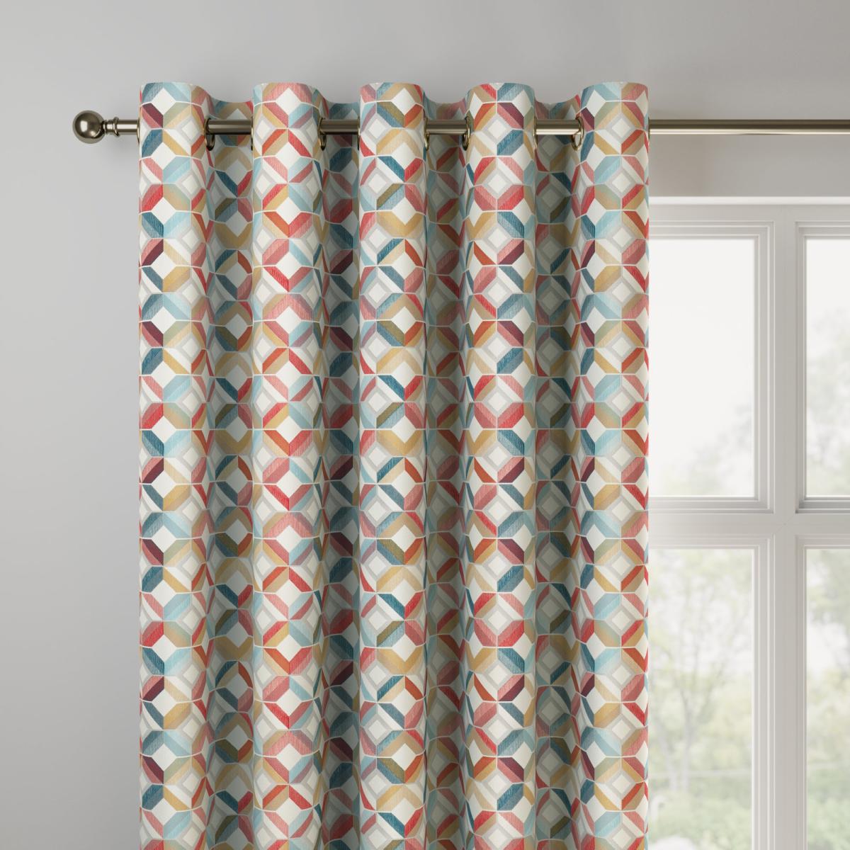 I love this curtain for its cheerful, geometric pattern that adds a lively touch to any room. It works particularly well in contemporary interiors or eclectic schemes where colour and pattern are key features. The 'Tutti Frutti' design makes it a great statement piece, yet it’s versatile enough to complement neutral walls or be a playful contrast in more colourful spaces. For styling tips, consider pairing these curtains with solid-coloured furniture to let the fabric stand out, and opt for simple accessories to avoid clashing with the busy pattern. They’re also suitable for larger windows where the pattern can be fully appreciated, and their bold design can help draw the eye and make a room feel inviting and vibrant.