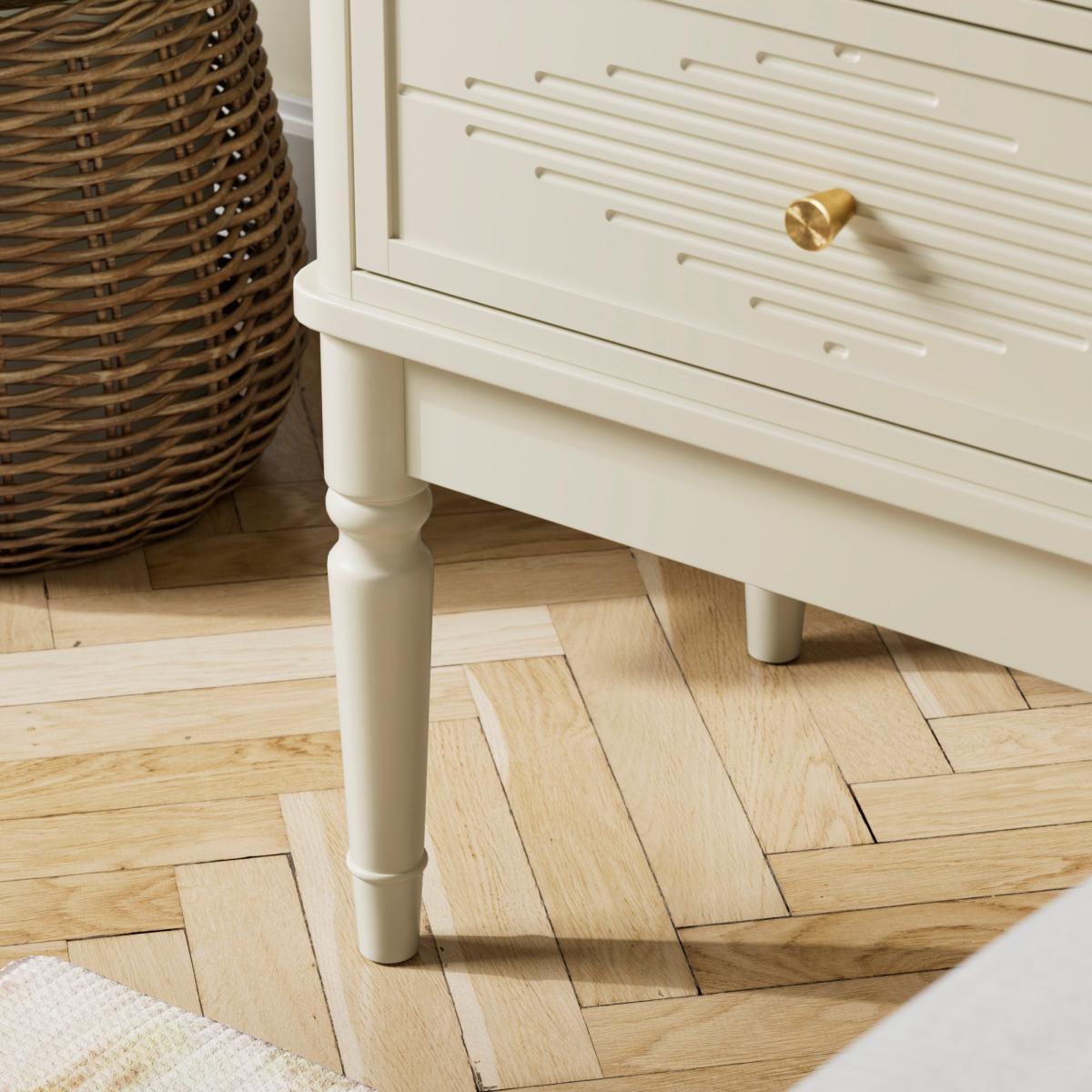 I’m a fan of the Ottilie bedside table for its neat proportions and subtle detailing - the turned legs and lined drawer fronts give it personality without overpowering a space. Its soft cream finish and brass knobs make it equally at home in a modern Scandi scheme, a relaxed coastal look or even a more traditional bedroom. To style it, keep the top clutter-free: a small lamp or sculptural vase, a neat stack of books and a shallow tray for your everyday bits (watch, glasses, phone). Tuck chargers or bedtime essentials in the two drawers to maintain a calm, organised feel.