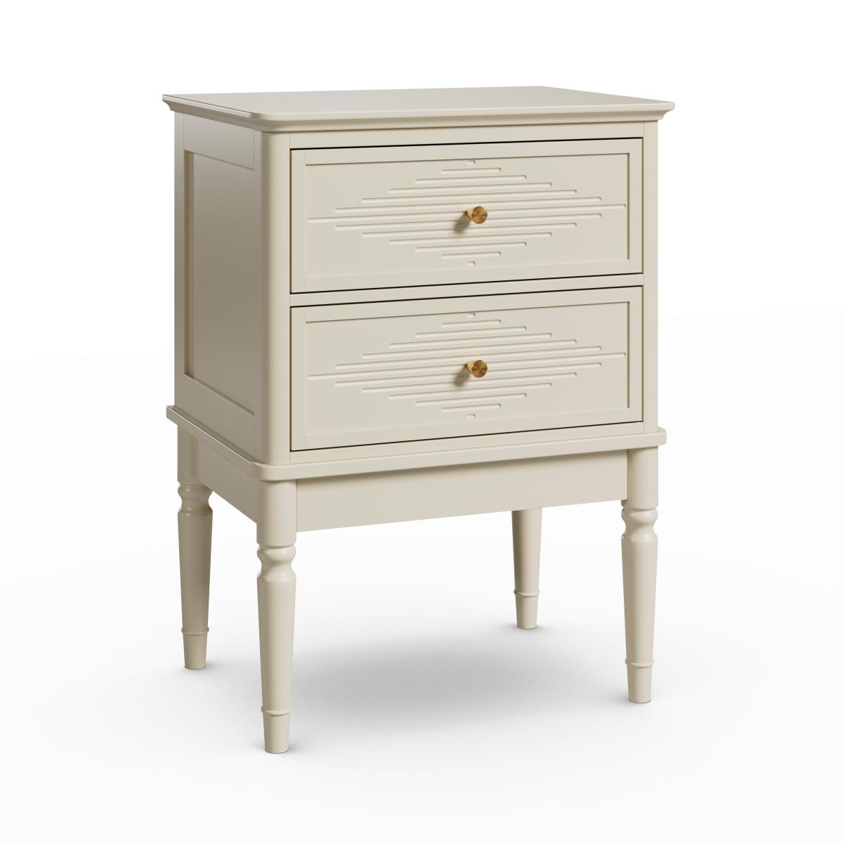 * Wooden frame * Gold hardware * Gustavian style Perfectly proportioned for bedside storage, this 2 drawer bedside table combines classic craftsmanship with practical design. The two spacious drawers provide ample space for nighttime essentials, while the gold hardware adds a subtle touch of luxury. Available in Soft Olive for a fresh, calming aesthetic or Stone for a neutral, effortlessly stylish look.
