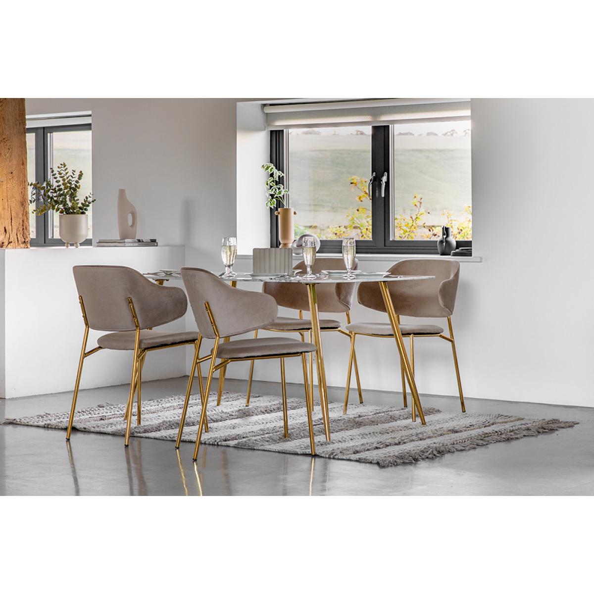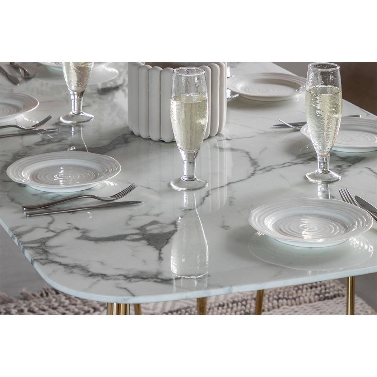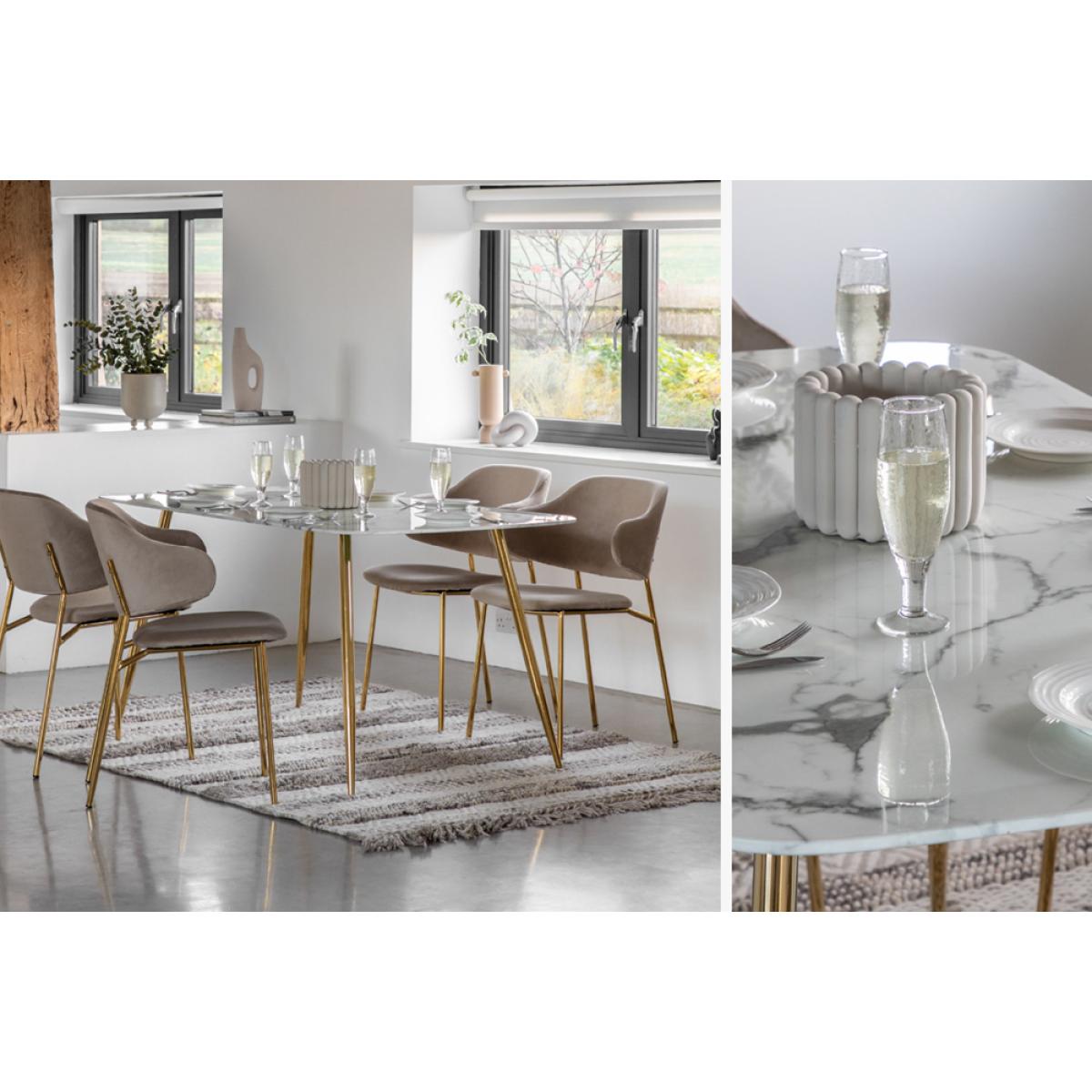 Make your everyday dining space extra luxe with the Otto dining table. The stunning white faux marble glass top feels oh so opulent, slim tapered gold legs add that final finishing touch and elevate your space to its most glamourous potential. Seating 6 the Otto table is the perfect place to spend an evening with friends.