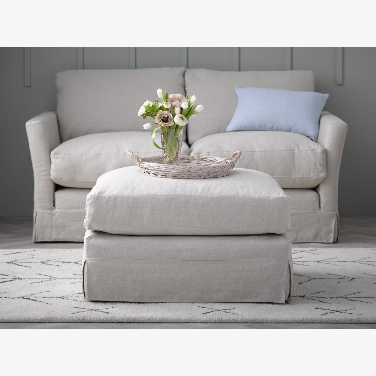 I love this footstool for its versatile colour and luxurious jacquard weave, which instantly adds a touch of sophistication to any space. It works particularly well in both classic and contemporary interiors-pair it with a crisp linen sofa or a velvet-upholstered armchair for a curated look. Practical styling tips include using it as a footrest, a side table by adding a tray on top, or even as extra seating when entertaining. Its neutral cornflower tone can be easily complemented with pastel shades or contrasting textures, making it a flexible addition to a living room or reading nook.