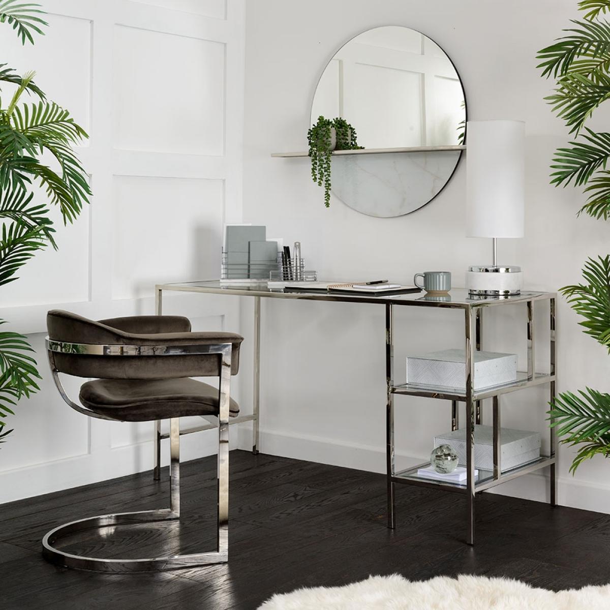 I’m a fan of the Otto desk for its clean lines and polished-silver frame, which keep a workspace feeling light and uncluttered. It’s ideal in contemporary, minimalist or Scandi-inspired rooms, and the clear top helps it blend into a variety of colour schemes without dominating the view. For styling, keep the surface clear apart from one or two statement pieces - a slim LED desk lamp, a neat stack of design books and a small plant work well. Use matching silver or clear acrylic desk organisers to maintain the airy look, and position a soft-textured rug underneath plus a simple upholstered chair to add warmth without detracting from the desk’s sleek profile.