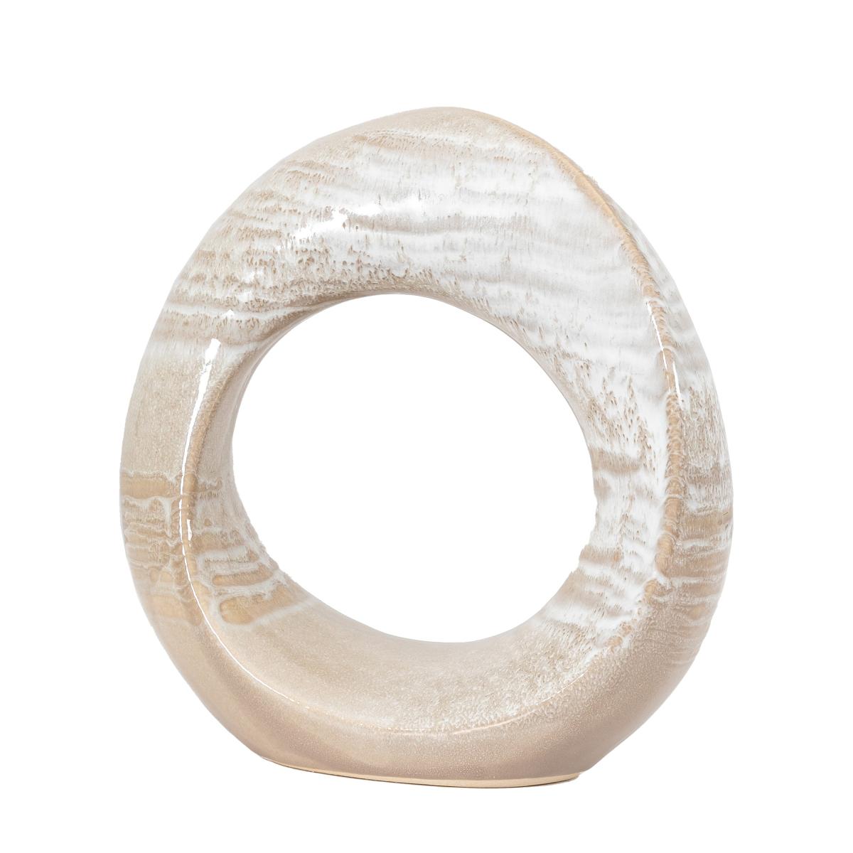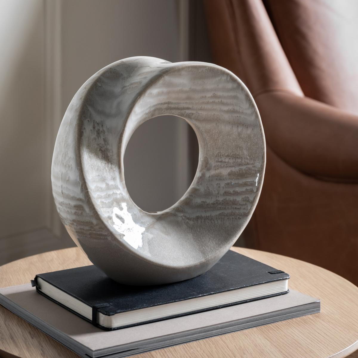 With a flowing organic shape and beautiful warm grey and white reactive glaze, this modern sculpture will add a little sophistication to any room.