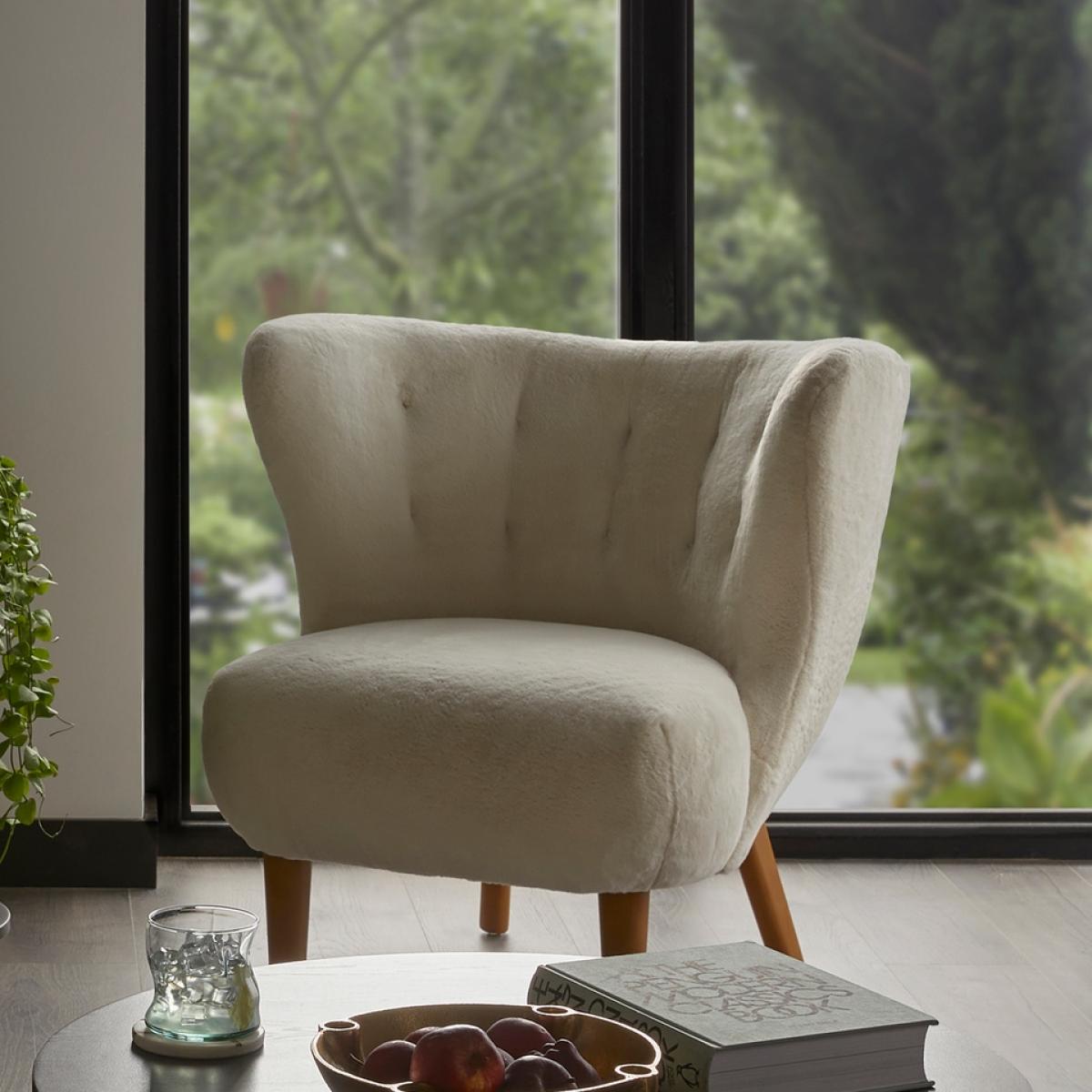 Comfort meets chic design to create the Otto Wingback Accent Chair. The classic wingback silhouette has been reimagined with sleek, contemporary lines offering stylish yet timeless appeal. Otto has been upholstered in luxurious, white faux fur that adds a touch of opulence and sophistication to your room. The plush, soft texture of the faux fur invites you to relax and unwind, making it an ideal spot for reading, lounging, or enjoying a cup of tea, while the gently curved backrest adds to the sense of cosiness.