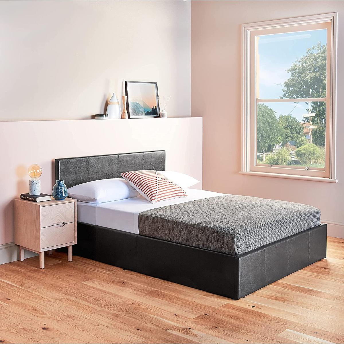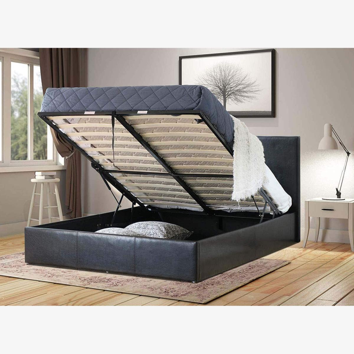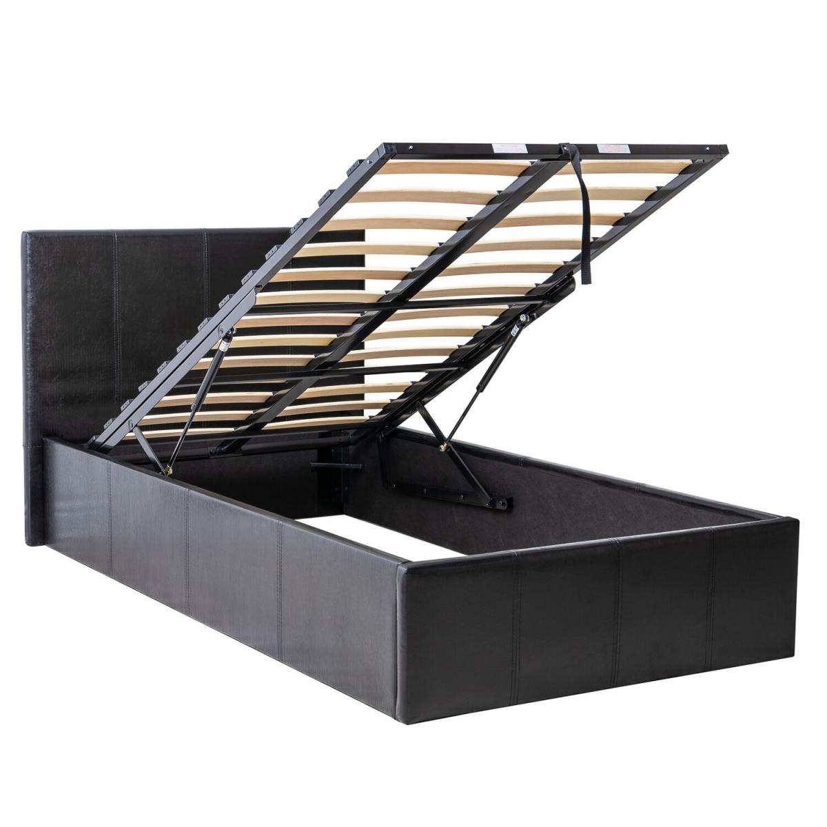 Ottoman Bed Black Leather Storage Bed - Black / Yes / Small Double