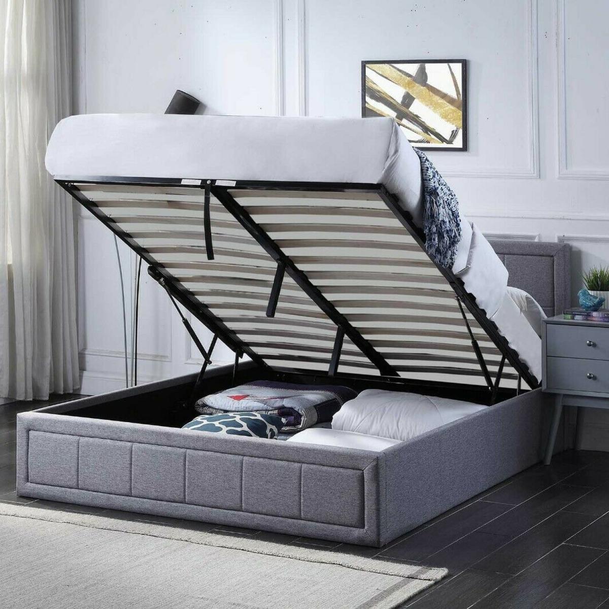 Stylish design - Upholstered in a grey hopsack linen. This ottoman storage bed frame will effortlessly blend into any bedroom interior. Extra Storage - Create extra space in your bedroom with a huge capacity under-bed storage compartment. Fabric base included to keep your items dust free. Design with Comfort in mind - Padded headboard, base & sides with strong sprung wooden slats for support and strength. Durable - Featuring an easy access hydraulic dual lifting mechanism, this storage bed is made from the highest quality materials including the strong centre support beam and upholstered frame. Pocket & Memory Foam Mattress Highest comfort premium hybrid mattress - Thick 16cm up to 660 independant pocket springs mould to the body. High-density foam +memory foam 2cm quilted top layer. Medium Firm- British Standard Certified. Breathable hypoallergenic cool touch cover. Anti-dust + Anti-mite
