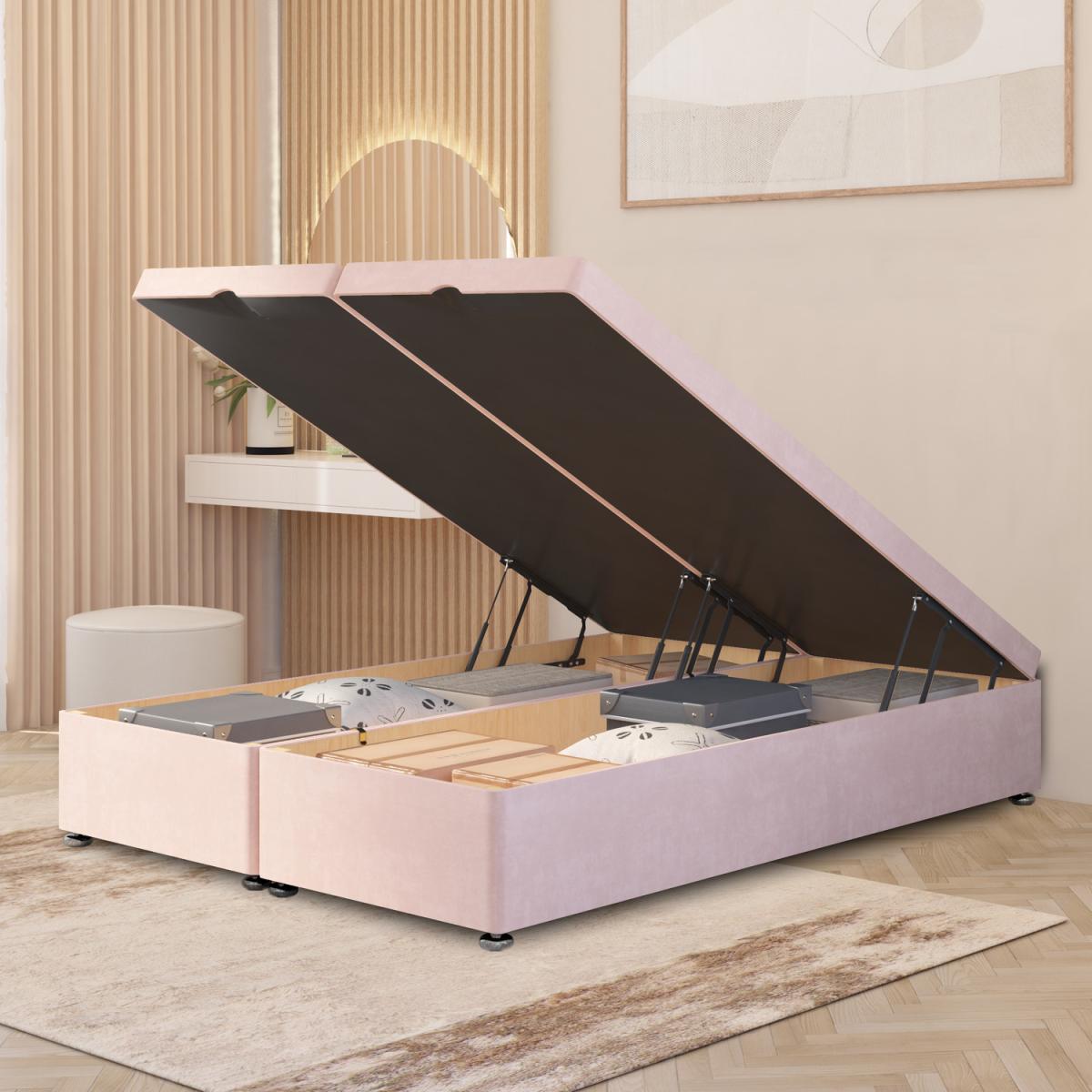 This Solid Wood Plush Velvet End Opening Ottoman Divan Bed Base combines timeless design with superior functionality. Expertly crafted in the UK from solid wood, this ottoman offers exceptional strength, stability, and long-lasting quality. The solid, non-slip platform top provides firm, even support for your mattressfar superior to slatted frames that can flex or weaken over time. Inside, the luxury wooden interior showcases a rich wood tone and smooth finish, elevating the look and feel of the storage space. Unlike cheaper ottomans where items rest directly on the floor, this base features a fully boarded wooden floor, keeping your belongings neat, protected, and easily accessible. The base stands 34.5cm high (37.5cm with gliders) and offers 24cm of discreet internal storage, easily accessed via gas-assisted end-lift pistons (600N800. N depending on size). All sizes are UK made and meet the highest safety and quality standards. 2FT. 6 Ottoman Bed, L 190cm x W 79cm
