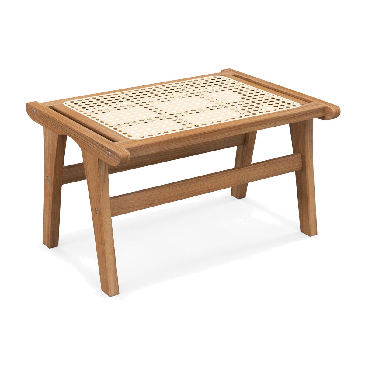 Discover our unique hand-woven rattan ottoman, designed for sustainability and breathability. Its natural beauty and boho style effortlessly elevate any indoor space. The solid teak wood construction ensures a reliable, smooth, and burr-free surface that is easy to maintain. This teak wooden footrest is the perfect companion for lounging, reading, or relaxing activities. Enhance your living room or bedroom with this versatile and stylish ottoman.