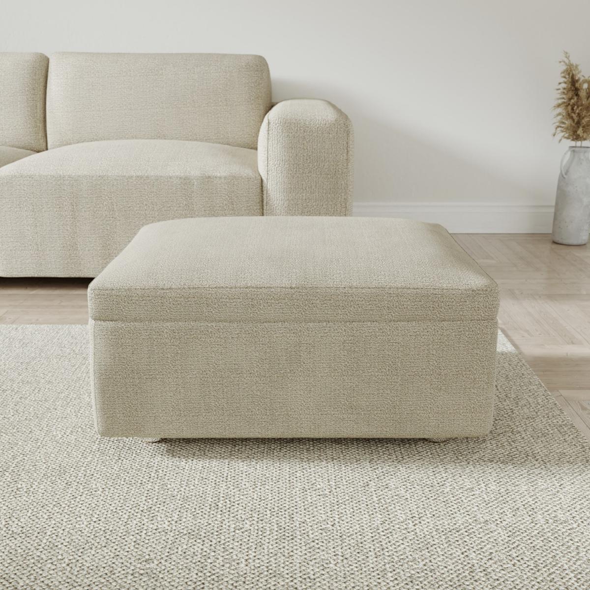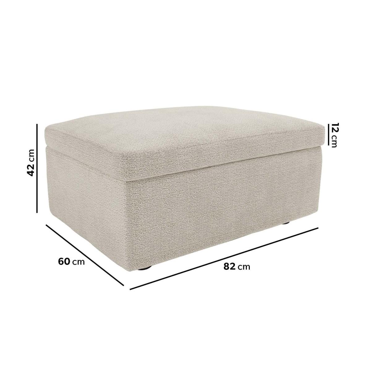 Dimensions H42 x W82 x D60 cm Features. Modern and; simplistic footstool with clean linesBeautifully upholstered in a durable beige woven fabricFeatures minimal set-back chrome legsPerfect addition to the matching Kolt Sofa..