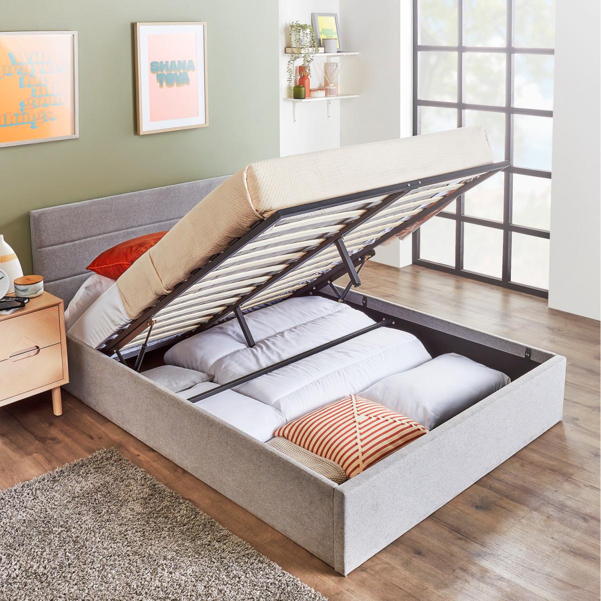 Upholstered beautiful grey linen bed frame with a feature-lined headboard will effortlessly blend into any bedroom interior. Create extra space in your bedroom with the under-bed storage space with easy gas lift access. The padded headboard, base and sides and sprung wooden slats for support and strength means this bed was designed for your comfort. A high comfort pocket sprung & memory foam hybrid mattress comes with the bed which has a breathable cool touch hypoallergenic cover that is anti-dust and anti mite. Made from a high-density 3cm foam & memory foam quilted top layer, this mattress is a medium firm rating and is perfect for all ages & sleeping positions.