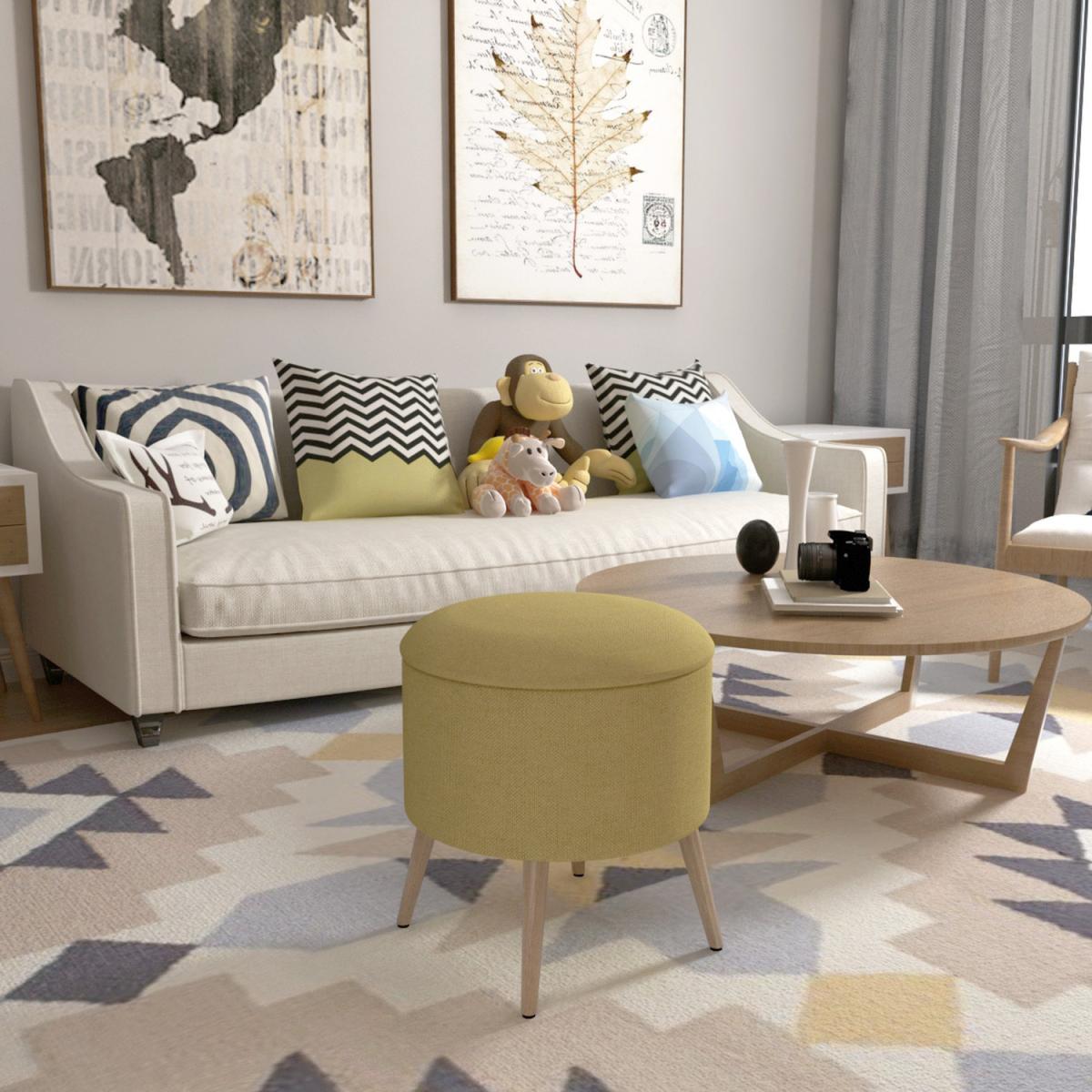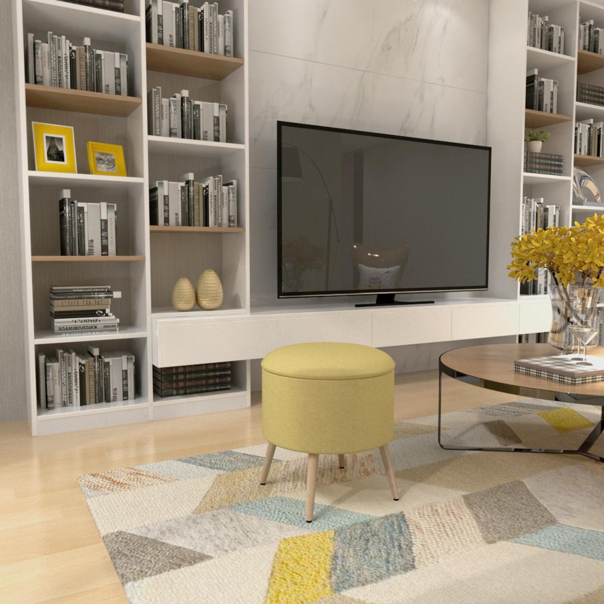 Our footstool is not only a footrest, an additional seat, it is got something more than that, it can also be used as a storage ottoman. It is not only modern and fashionable in design, it will match any style of your room and your furniture. Just simply lift up the lid, there's plenty of space inside which helps relieve your clutter. Besides, our stool seat with soft sponge infilling and thick padded cushion offering added comfort. This is perfect to use as an extra table or for adding space, or simply use it to put your feet up and relax. This large, tufted, round storage ottoman is a wonderful decoration to any home.