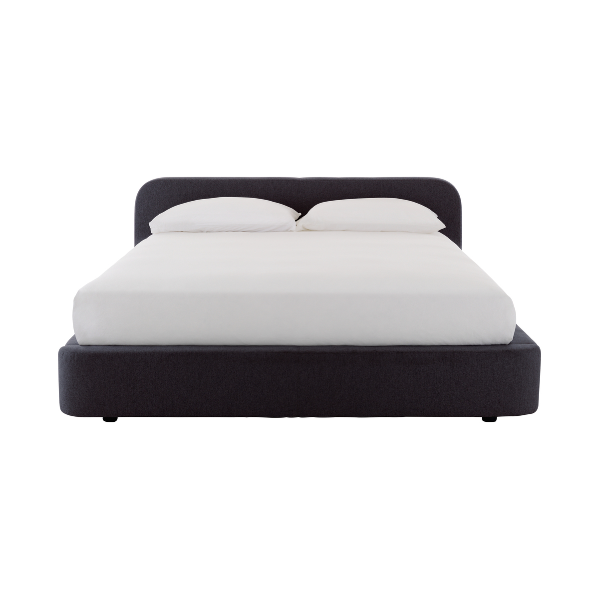 Luxurious and contemporary, the Ottori storage bed with Eton mattress is fully upholstered in a premium, black wool mix fabric. The low platform bed features easy lift-up wooden slats revealing spacious storage beneath for bedding essentials. The smooth, soft curves and a deeply cushioned frame give the bed a clean lined look. It is partnered with the Eton EU double mattress, which provides firm support with premium natural fillings. The mattress is handmade in Ireland and features 1400 springs individually wrapped in fabric pockets, comforming to your body shape and reducing partner movement for minimal disturbance. For ultimate comfort, the mattress is finished with a beautifully soft hypo-allergenic stretch-knit fabric.