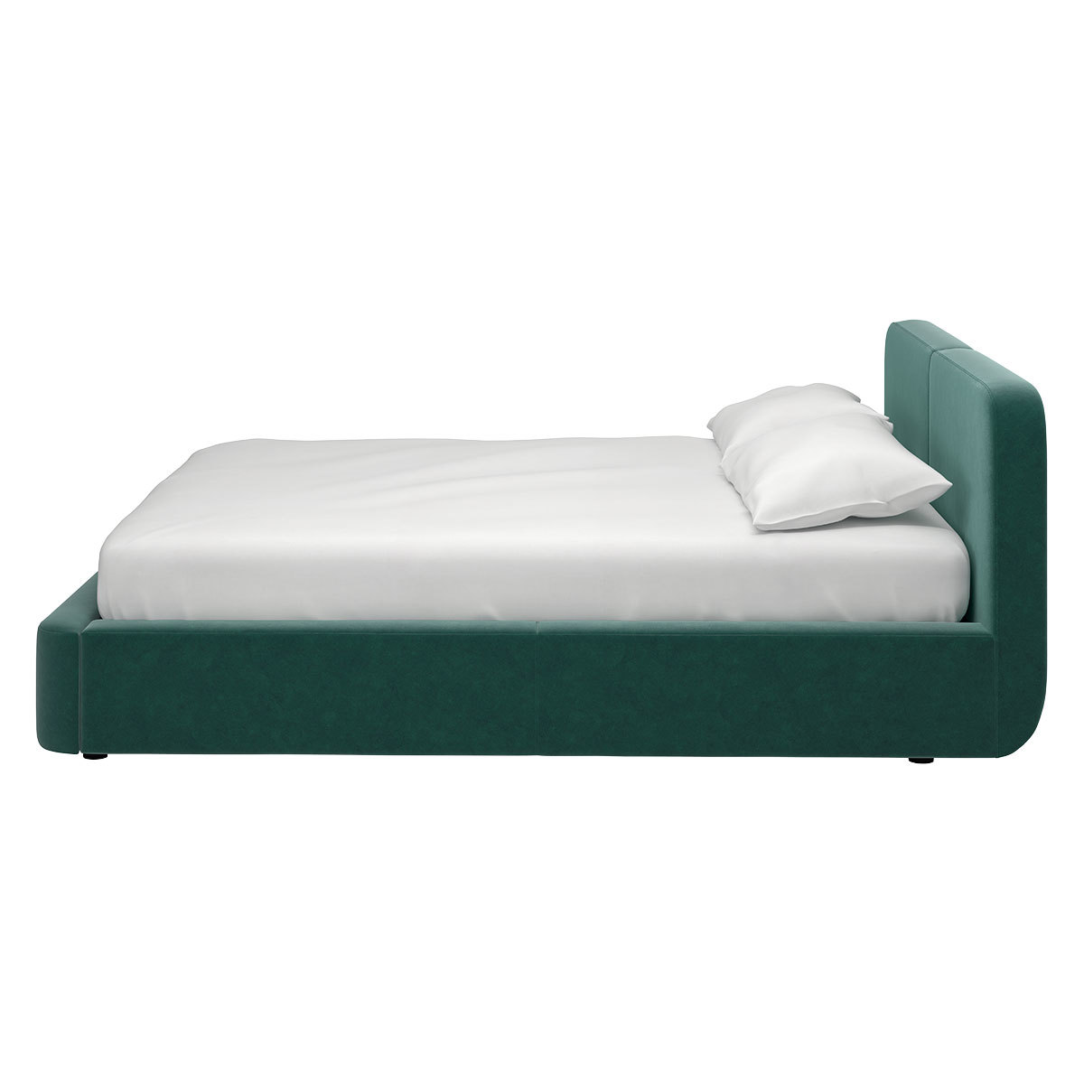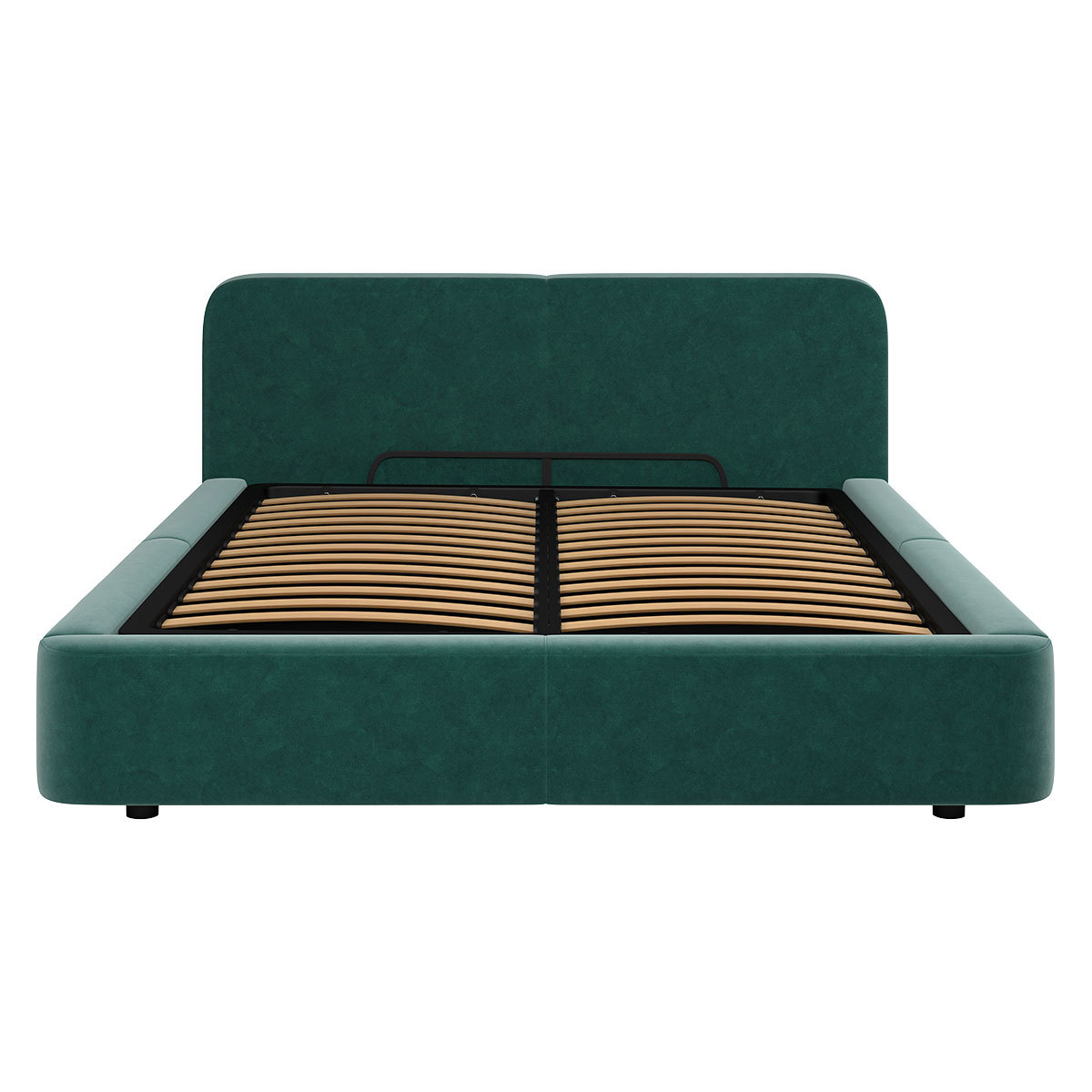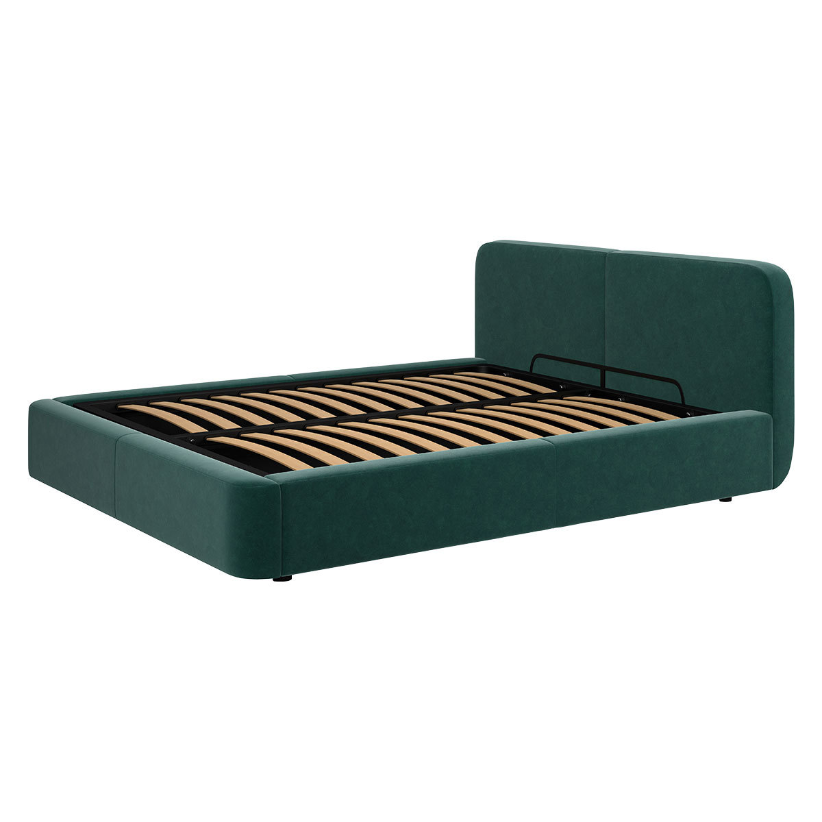 Quality and contemporary styled Ottori king bed is fully upholstered in luxurious emerald velvet fabric. Made in Italy, Ottori sleeping dimensions are slightly more generous and fit our european mattresses;The low platform bed features easy lift-up wooden slats revealing spacious storage beneath for bedding essentials. The smooth, soft curves and a deeply cushioned frame give the bed a clean lined look. Ottori is a EU continental size bed frame. Suitable for EU size mattress, sleeping dimensions W160 x L200cm. Part of the Ottori bed range, available in various colours in leather and wool, with and without storage option.