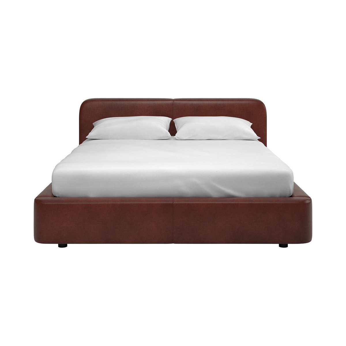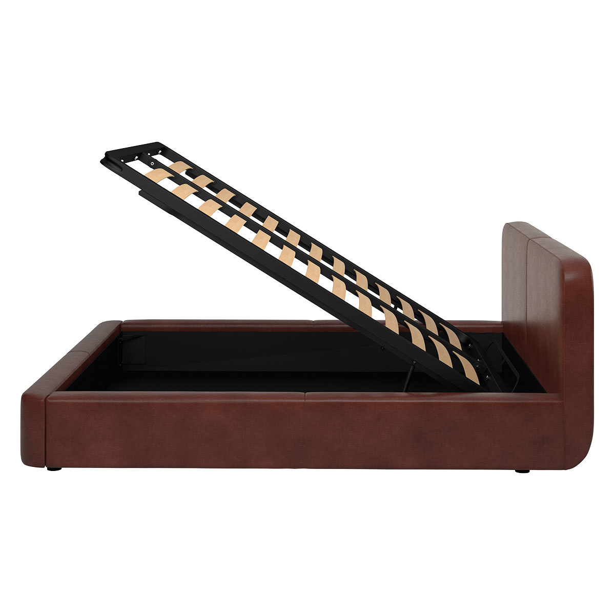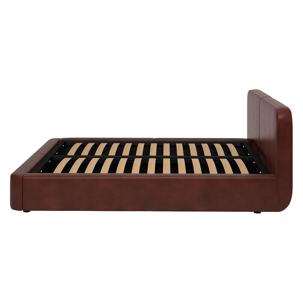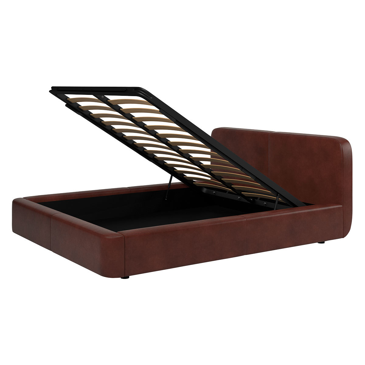 Quality and contemporary styled Ottori double bed is fully upholstered in luxurious, mid tan leather. Made in Italy, Ottori sleeping dimensions are slightly more generous and fit our european mattresses;The low platform bed features easy lift-up wooden slats revealing spacious storage beneath for bedding essentials. The smooth, soft curves and a deeply cushioned frame give the bed a clean lined look. Ottori is a EU continental size bed frame. Suitable for EU size mattress, sleeping dimensions W140 x L200cm. Part of the Ottori bed range, available in various colours in leather and wool, with and without storage option.