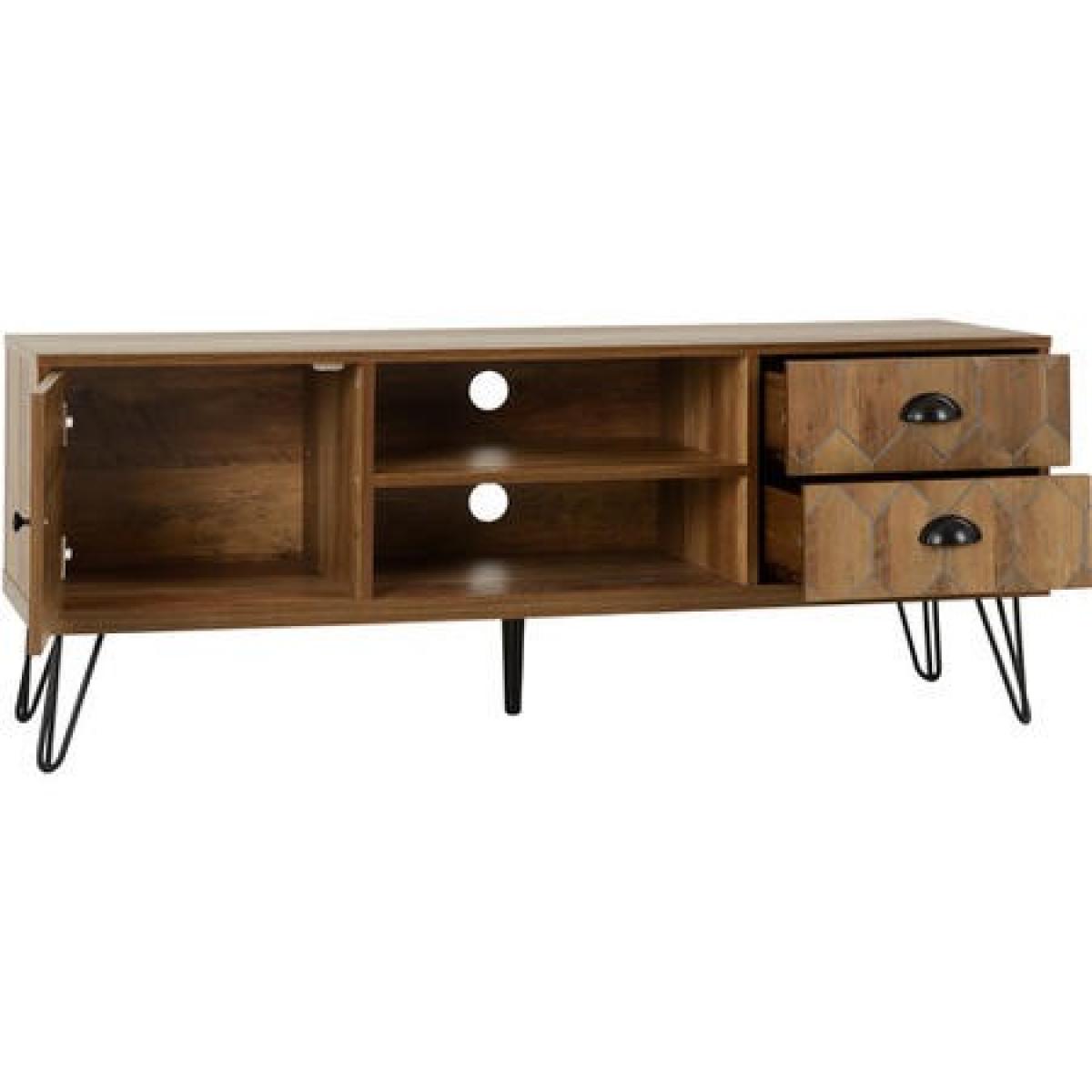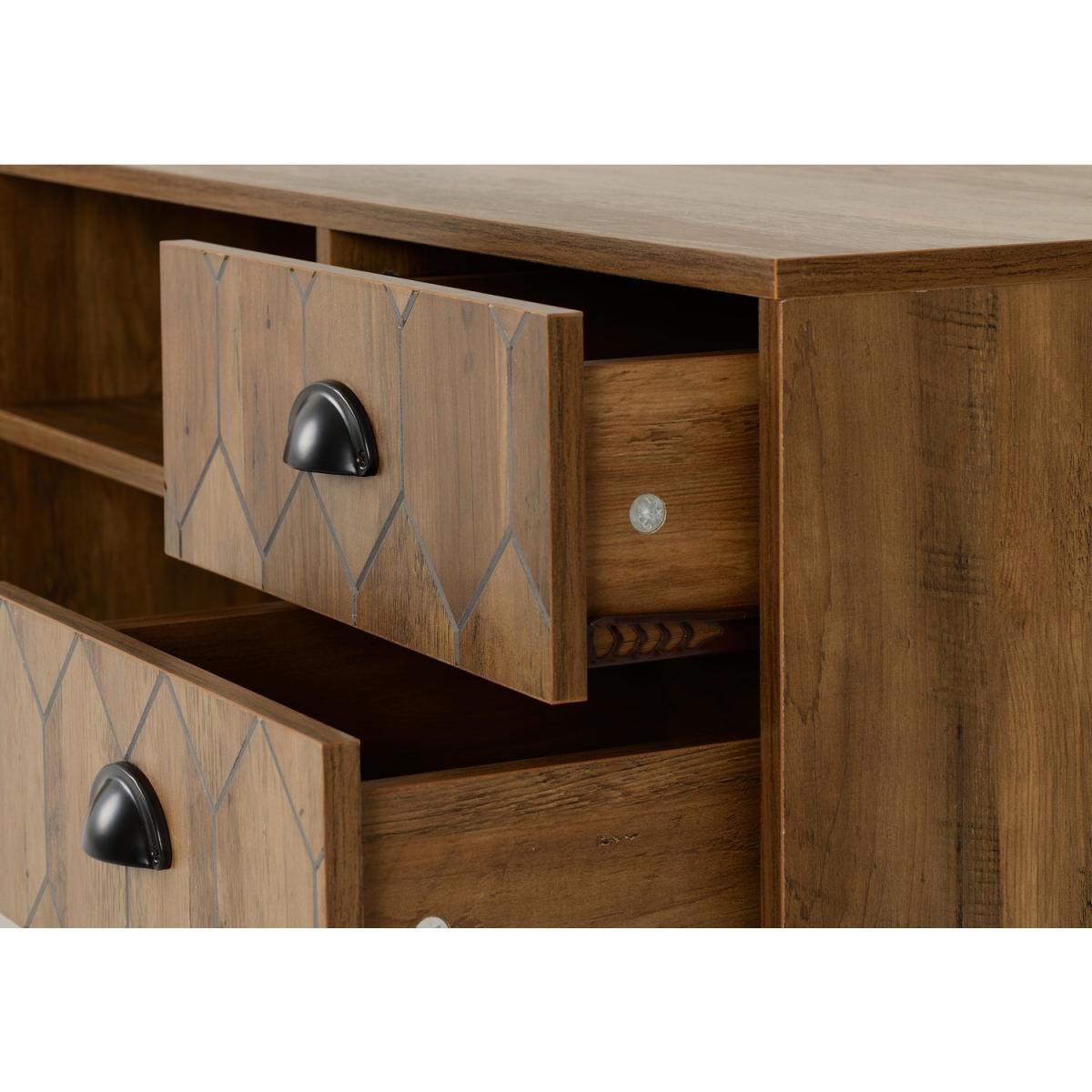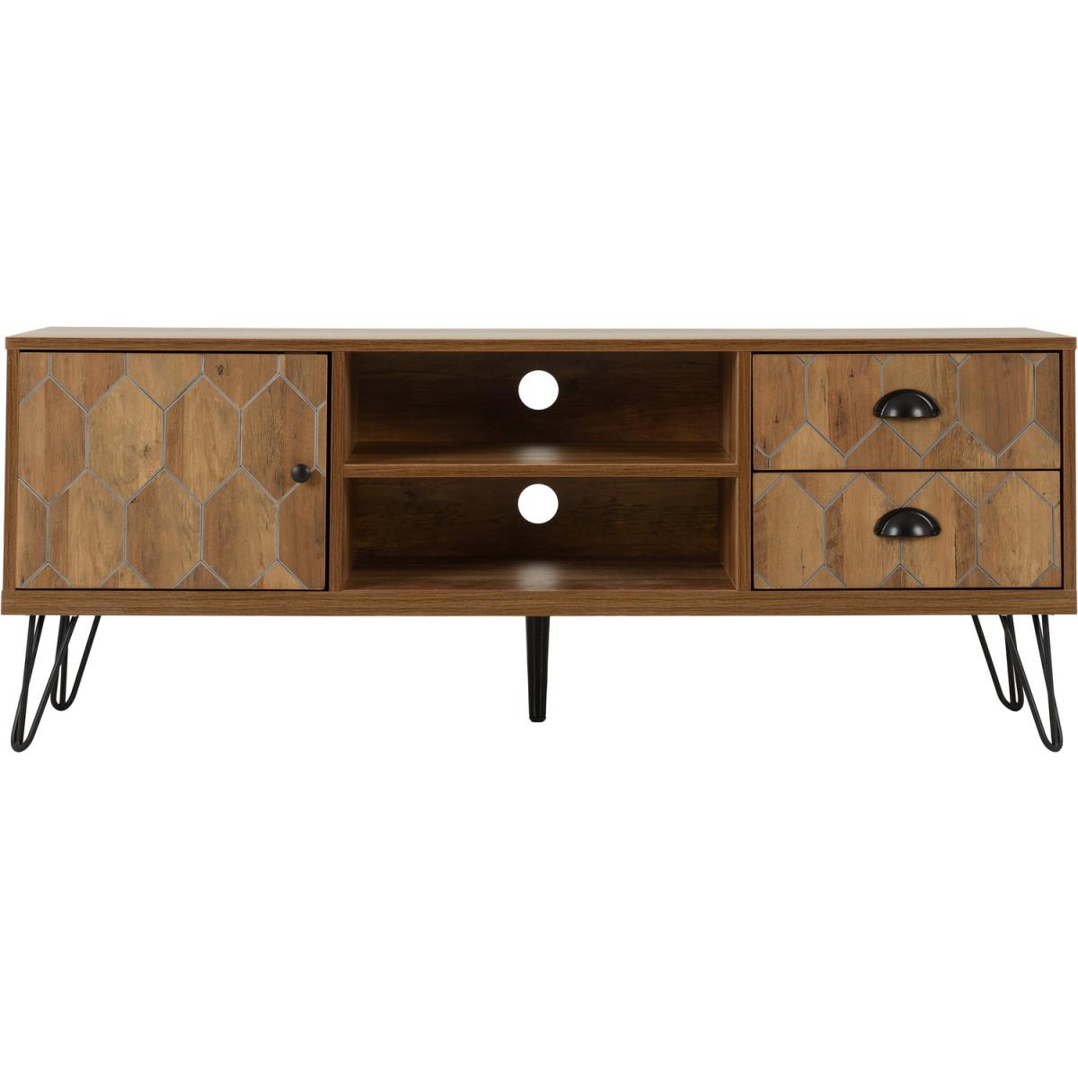 The Ottawa TVunit is finished in oak effect and features a stunning honeycomb inlay detailing. The perfect combination of function and style makes this the ideal storage piece for your living room.