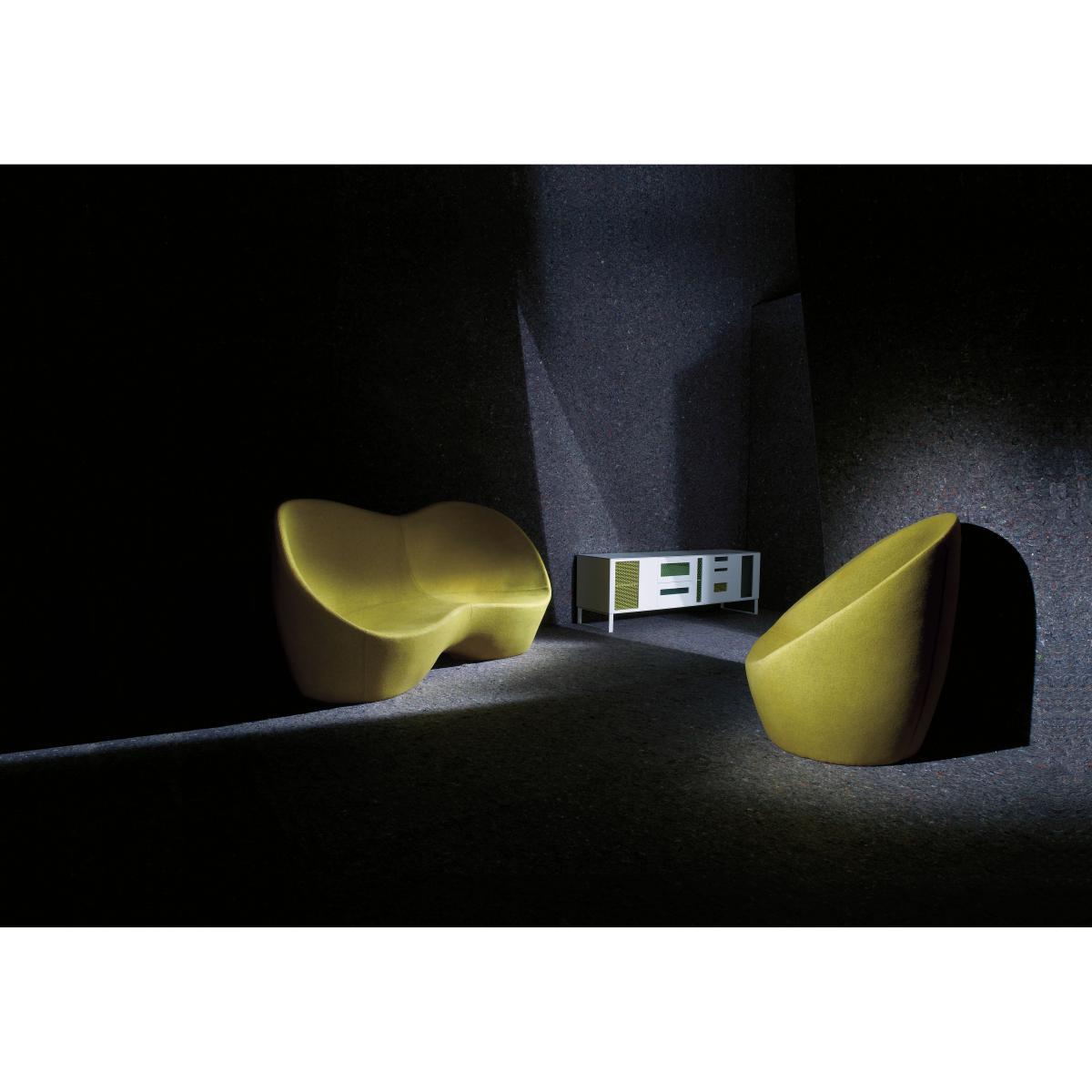 An armchair that embraces and envelops using the iconic forms that Karim has made his personal signature. Sculptural and bright, Kouch and Ouch add a sense of monolithic joy to the spaces they adorn. Created in expanded fire resistant foam with metal internal structure. Completely upolstered in non-removable fabric. Available with optional cup/object holders in white plastic.