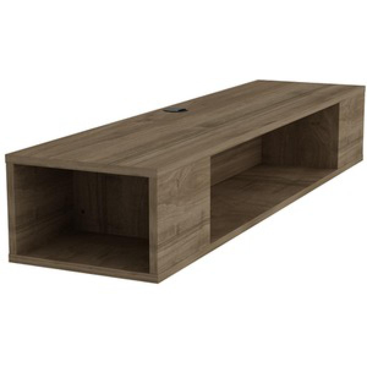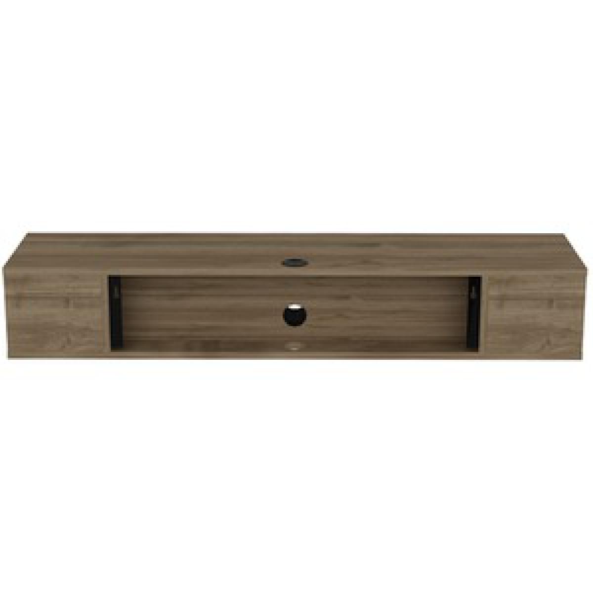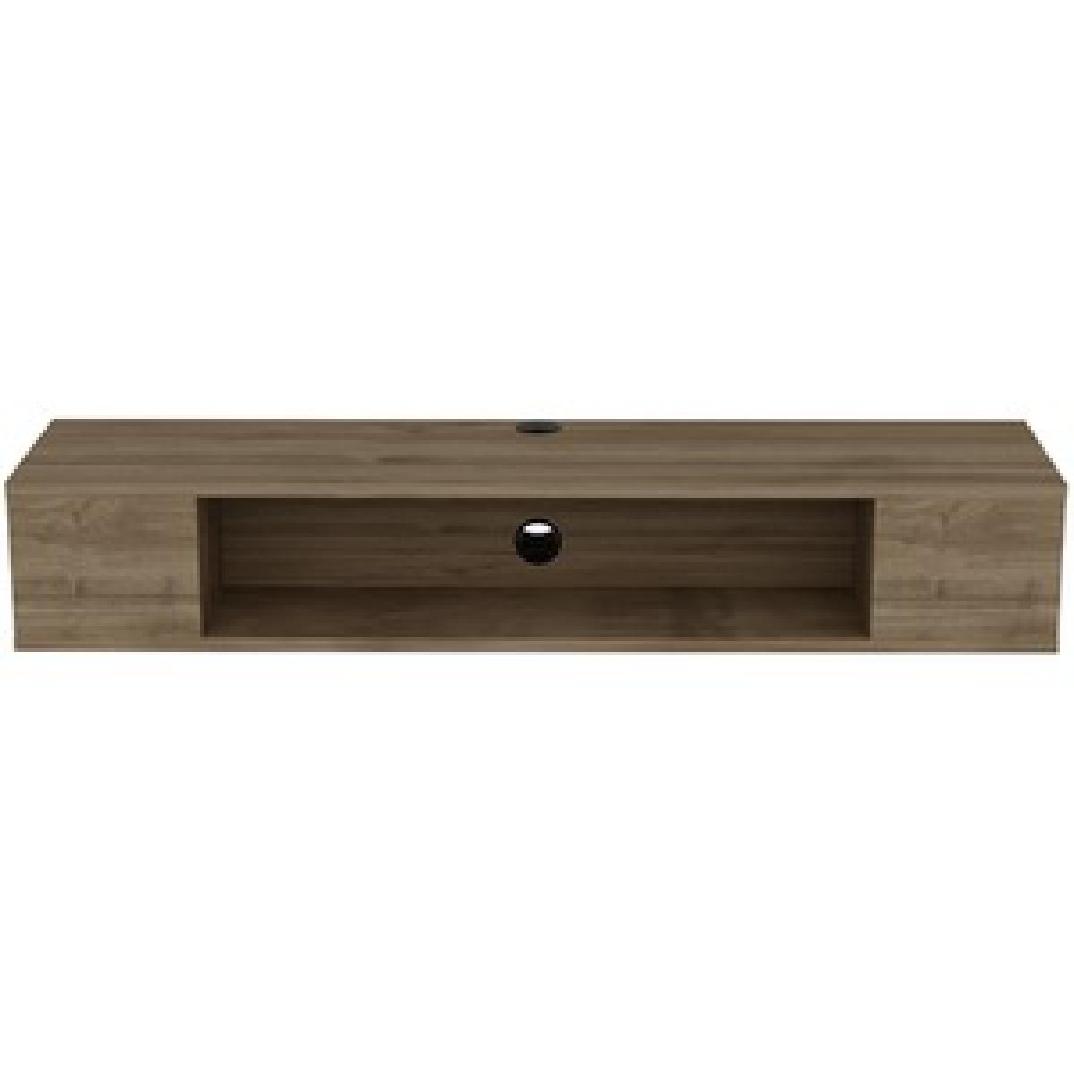 A simple yet contemporary floating TV stand and media console will open free space and bring in an airy look to your living room. It is not designed to hold a TV, instead, this design requires that the TV must be wall-mounted as shown in the photo. The Petini 135 cm wide media stand features three cubbies and a wiring compartment in the back providing storage space for your books, electronic devices, and media equipment. You can also showcase your decorative items and favourite family photos on the top space of the stand. A triple-holed adjustable cable management system with a small wire compartment in the back is specially designed to meet contemporary growing technological needs. The media stand will suit perfectly for any wall-mountable TVs up to 60''. It is made of an 18 mm thick melamine coated particle board and banded with PVC edge banding tape. The product will be delivered to the customer in the original package as disassembled. It is designed to be assembled and mounted to the wall by the customer easily using a power drill. Assembly instruction and installation hardware including metal wall mounting apparatus are included in the package. For fast and error-free installation, product parts are numbered with stickers in accordance with the assembly guide.
