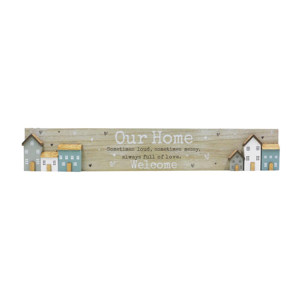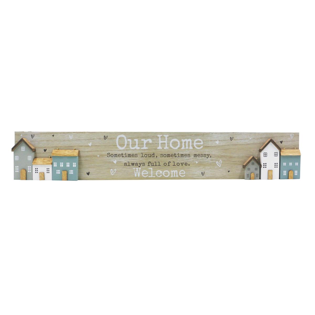 Make your house more like a home with this charming Our Home Wooden Plaque. Finished with a selection of quaint houses on a natural wooden base, it has a printed sentiment with heart accents. Ideal for hanging in your living room or hallway, this is the perfect accessory for communal areas.