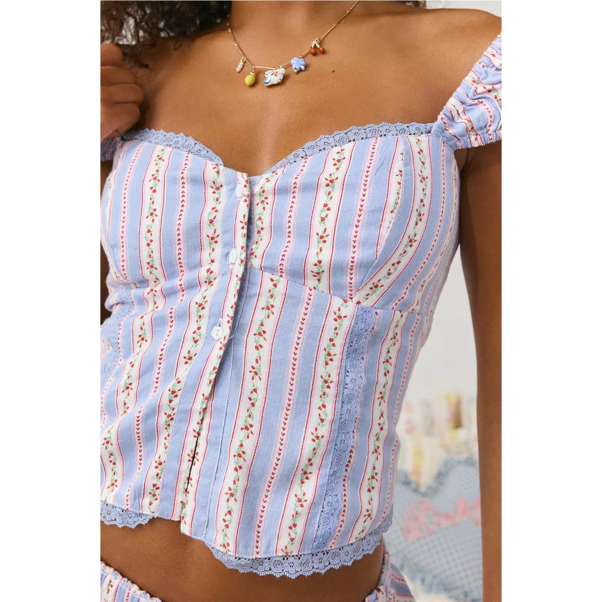 Pretty patterned blouse with lace trims by Out From Under. Crafted from lightweight fabrication, complete with a sweetheart neck, short elasticated capped sleeves, slim-fit bodice and cropped hem. Only at UO. **Content + Care** \- 65% Cotton, 35% Viscose \- Machine wash