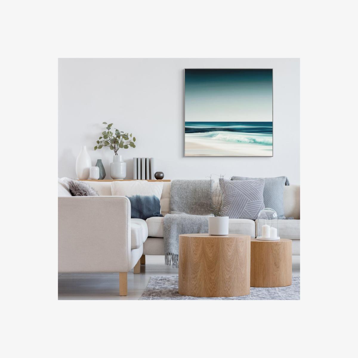 I love how the Out of the Blue print brings a calming, coastal vibe to any space. It's versatile enough to work well in both modern and more relaxed interiors, especially those with neutral tones or seaside-inspired colour schemes. To style it effectively, consider keeping surrounding accessories minimal to let the artwork stand out, or pair it with textured textiles to add depth. It’s particularly effective in living rooms or bedrooms where its tranquil colours can promote a serene atmosphere. For a cohesive look, hang it at eye level and complement it with other subtle blue accents or natural materials like wood or linen.