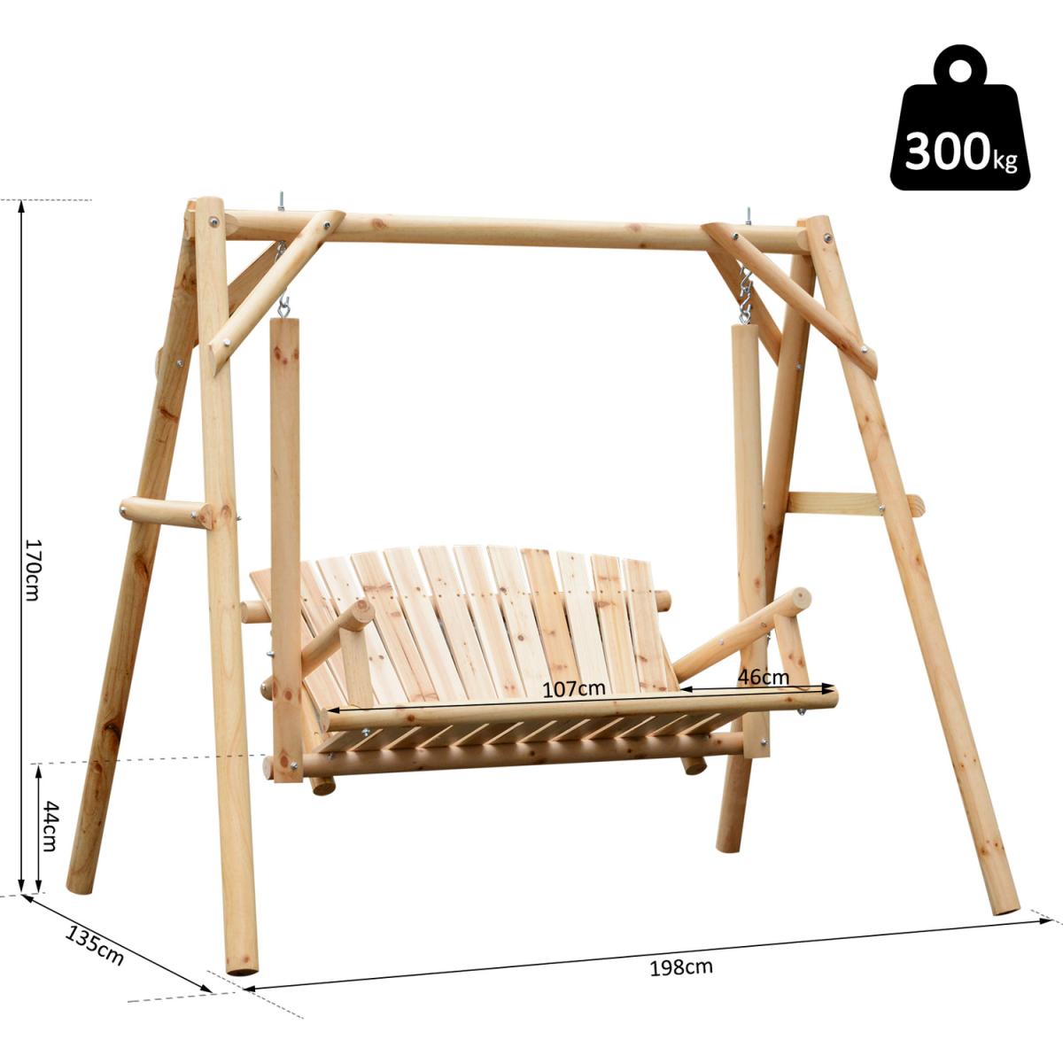 Outdoor 2 Seater Porch Swing - Natural Wood Colour