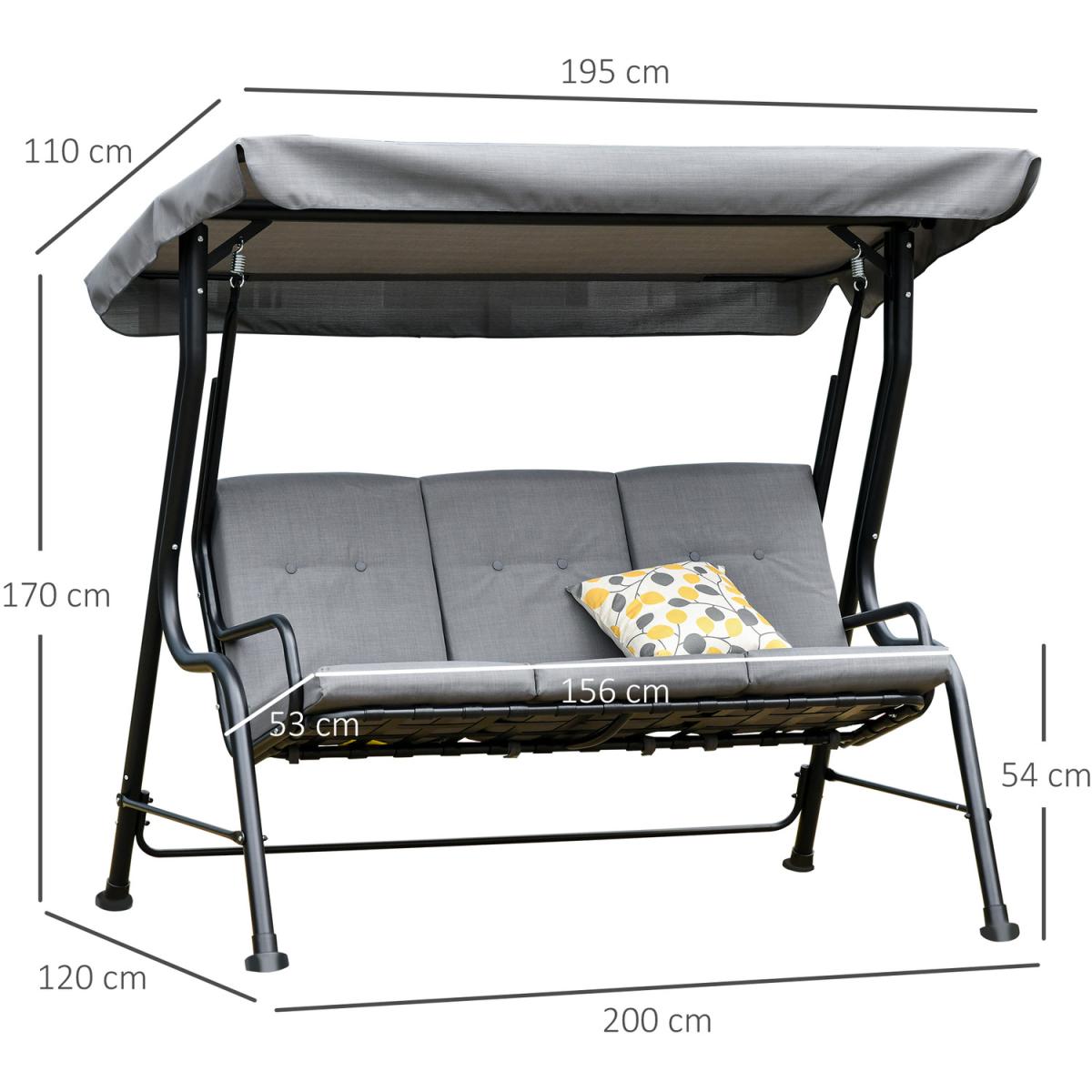 Outdoor 3-Person Metal Porch Swing Chair - Grey and Black