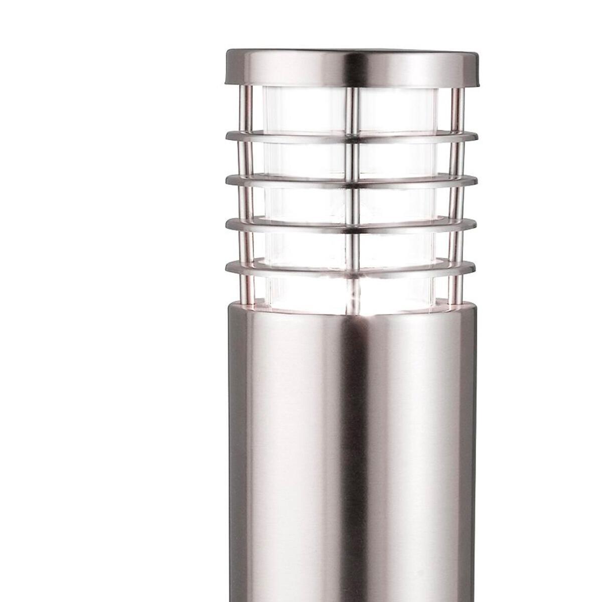 This Satin Silver Outdoor Bollard Light with Polycarbonate Diffuser is modern, sleek and stylish. The short 450mm cylindrical post has a lamp with stainless rings around the outside and a flat metal top. The polycarbonate shade is lit by an individual light, and the post is IP44 rated and fully splashproof to protect against the elements. Product Dimensions: 45cmx14cmx14cm. Bulb Type: E27 Max Watt: 10W. Number of Bulbs Required: 1. Bulb included?: No. This product will be dispatched by one of our trusted suppliers. You’ll be contacted by their selected courier about your delivery.