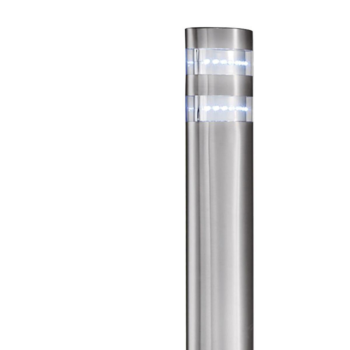 This Satin Silver 24 LED Outdoor Post Light with Clear Polycarbonate Diffuser is a stylish and practical way to light your garden and outdoor areas. The tall, 90cm, stainless steel post has rounded edges and two narrow cutaway strips, which are lit by 24 LED lights using the latest energy saving LED technology. It is also IP44 rated and fully splashproof to protect against the elements. Product Dimensions: 90cmx10cmx10cm Bulb Type: LEDMax Watt: 1.5W. Number of Bulbs Required: 24. Bulb included?: Yes. This product will be dispatched by one of our trusted suppliers. You’ll be contacted by their selected courier about your delivery.