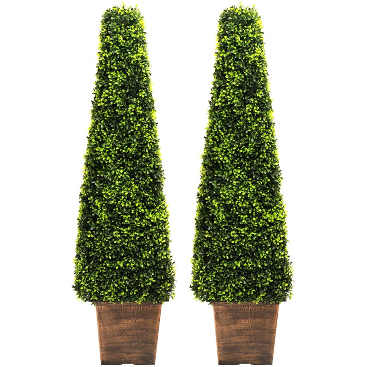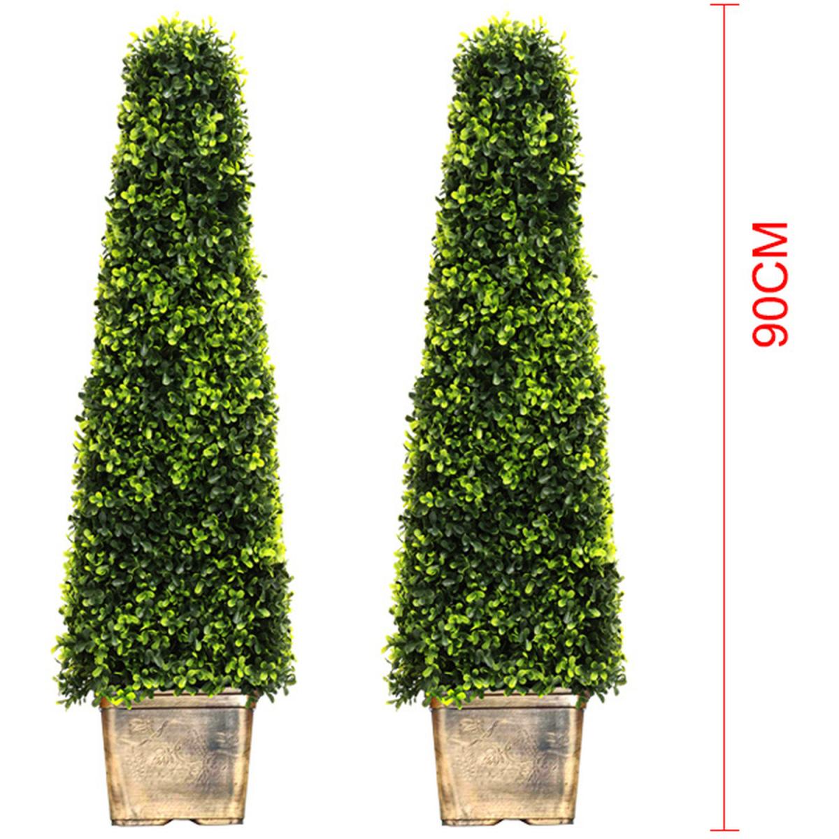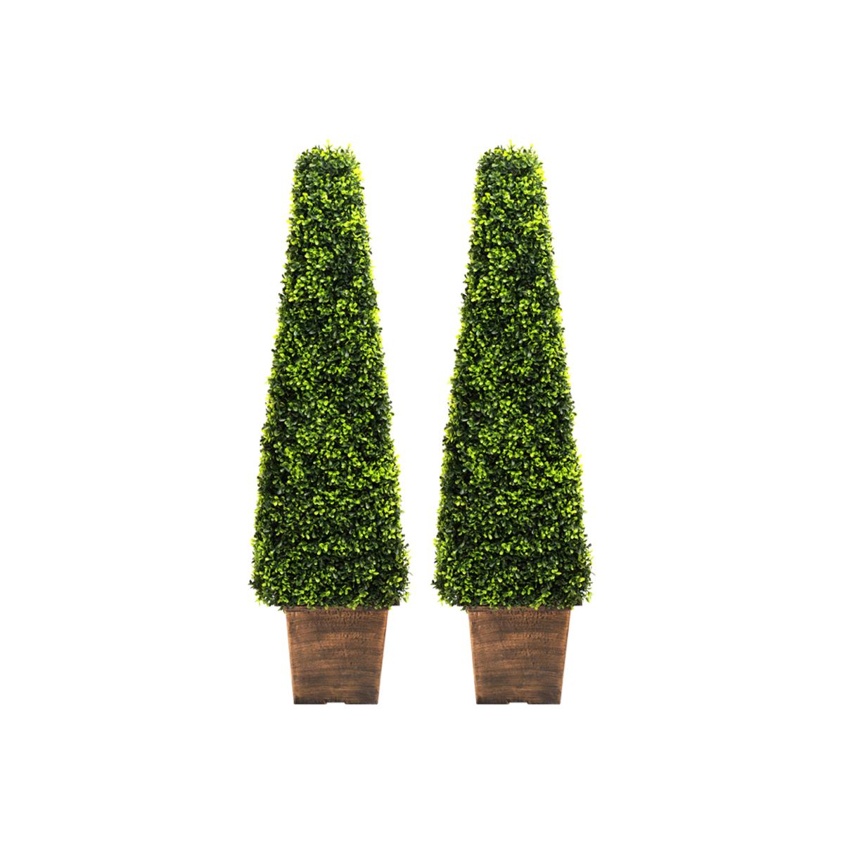 This set of 2 realistic topiary trees are designed in a tapered shape, which is unique and is sure to add aesthetic ambience to any place. Introduce them into your house for a setting update. Your guests will be attracted by these lifelike and fresh plants. No matter what season it is, the plants will stay green and lively thanks to their durable material.