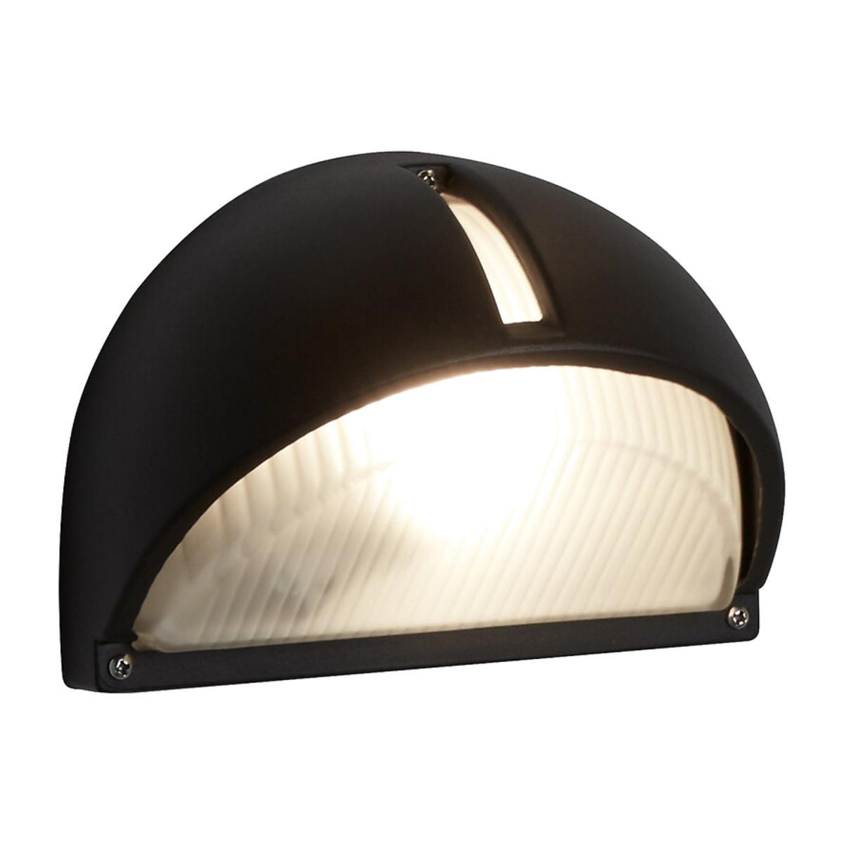 This Black Aluminium Half Moon Outdoor Light with Ridged Frosted Glass is perfect for lighting your garden and outdoor areas at night. The domed half-moon shape gives it a contemporary appearance, and the ridged frosted glass shade provides a practical source of downlight. The modern wall fitting is IP44 rated and designed to withstand the elements, with a stylish cutaway strip of light at the top to complete the look. Product Dimensions: 13cmx22cmx15cm Bulb Type: E27 Max Watt: 10W. Number of Bulbs Required: 1. Bulb included?: No. This product will be dispatched by one of our trusted suppliers. You’ll be contacted by their selected courier about your delivery.