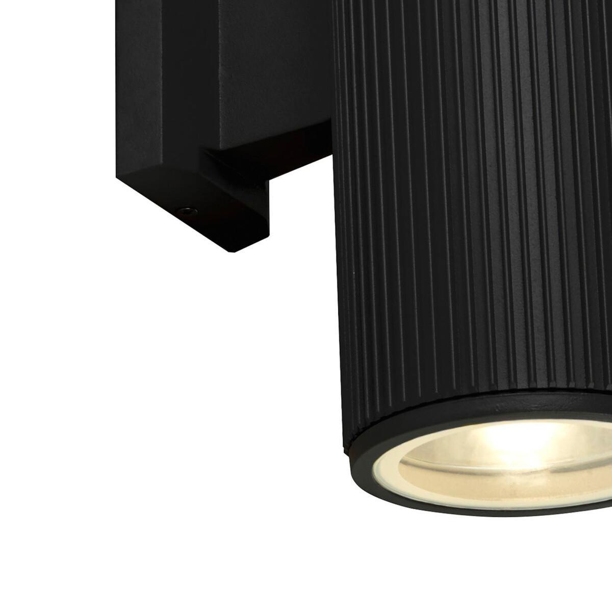 The black die cast aluminium wall light houses 2 bulbs and 2 clear glass diffusers which sends light cascading up and down the wall to which it's fitted. Perfect for lighting specific areas such as a patio or porch and the stylish ridges running down the length of the case adds a subtle design feature to this practical light. Product Dimensions: 21.5cmx11.5cmx17.5cm Bulb Type: E27 Max Watt: 60w. Number of Bulbs Required: 1. Bulb included?: No. This product will be dispatched by one of our trusted suppliers. You’ll be contacted by their selected courier about your delivery.