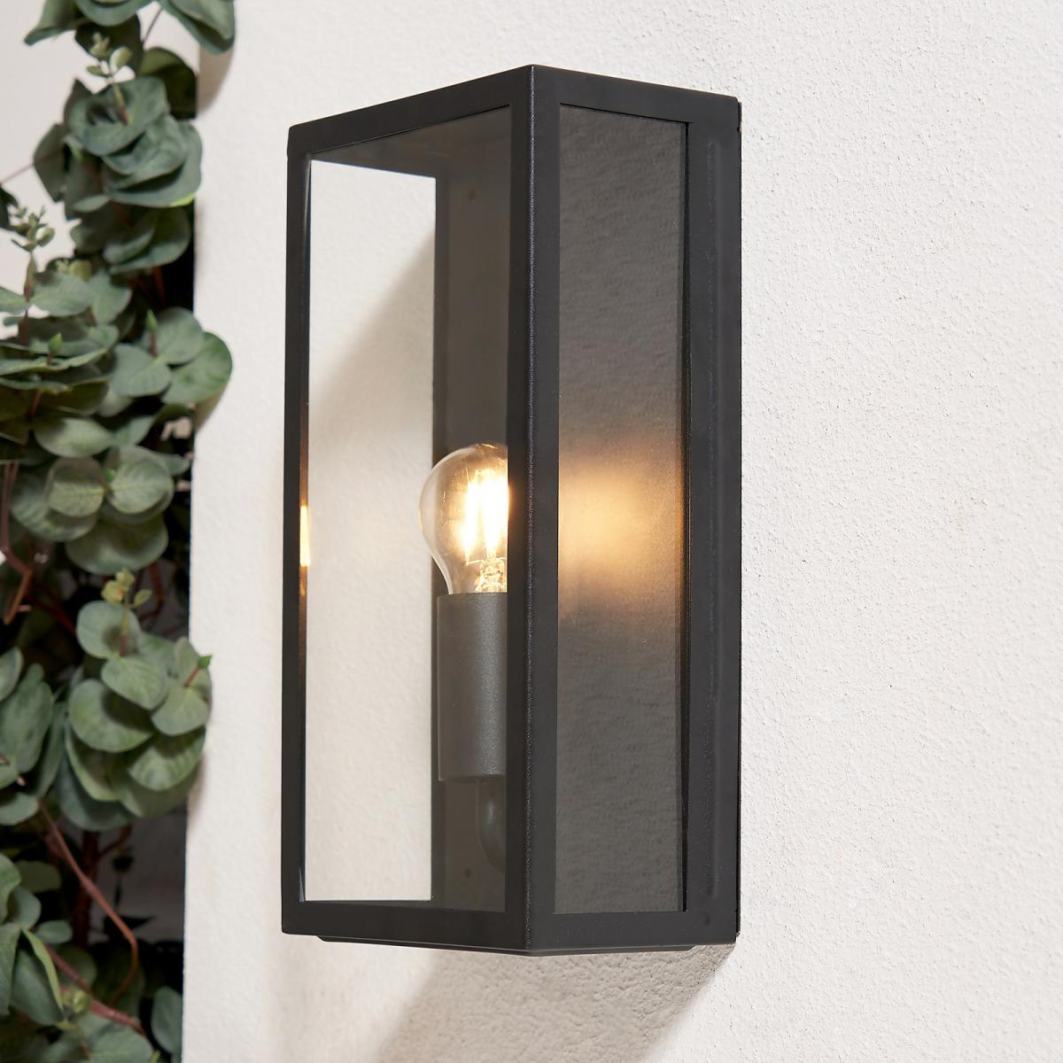 Illuminate your outdoor spaces with a contemporary flair using our Outdoor Box Lantern Wall Light with an anthracite finish. This sophisticated lighting fixture combines modern simplicity with timeless elegance, creating a sleek focal point for your home's entryway. Designed for both style and functionality, this box lantern light will transform your outdoor space with a touch of understated sophistication. Its IP44 rating makes this wall light weatherproof and suitable for outdoor use.