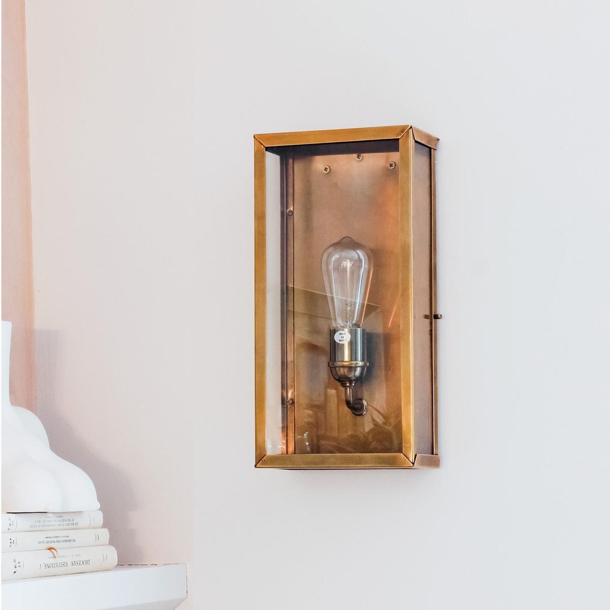 I love this brass wall light for its understated yet elegant industrial charm. It works particularly well in converted warehouse-style interiors, traditional outdoor garden spaces, or even modernising a period façade with a touch of vintage sophistication. When styling, consider pairing it with other brass or metal accents to create a cohesive look. Practical tips include placing it beside entry doors or along pathways for both aesthetic appeal and functional lighting. Its simple, minimalist design ensures it won’t overpower other elements, making it a versatile piece that adds warmth and character to any outdoor setting.