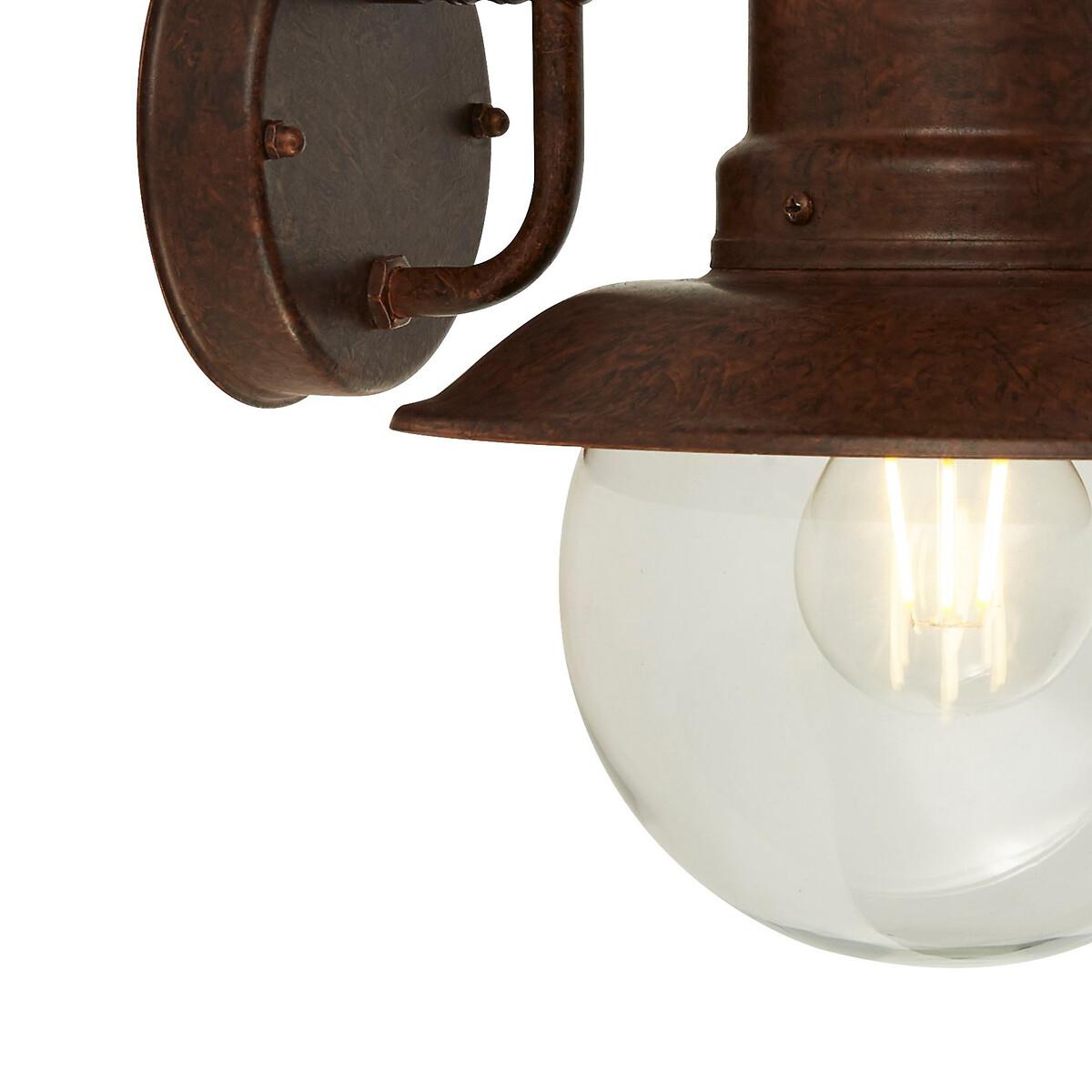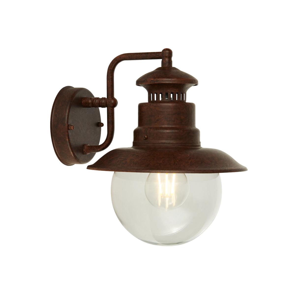 This outdoor wall lamp will bring a real rustic feel thanks to it's traditional styling. Rustic brown metal with an old school lantern design holds a clear glass shade which shows off a decorative filament bulb and lights up the entire area around it with a warm white glow. It's attached to the wall with a matching metal plate and is perfect for use on front porches or seating areas. Product Dimensions:27cmx21.5cmx26.5cm Bulb Type: E27 Max Watt: 60w. Number of Bulbs Required: 1. Bulb included?:No. This wall light meets IP44 protection standards. This product will be dispatched by one of our trusted suppliers. You’ll be contacted by their selected courier about your delivery.