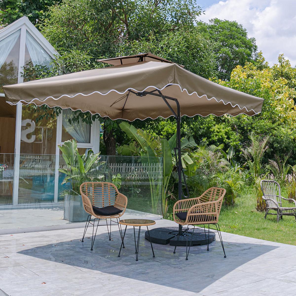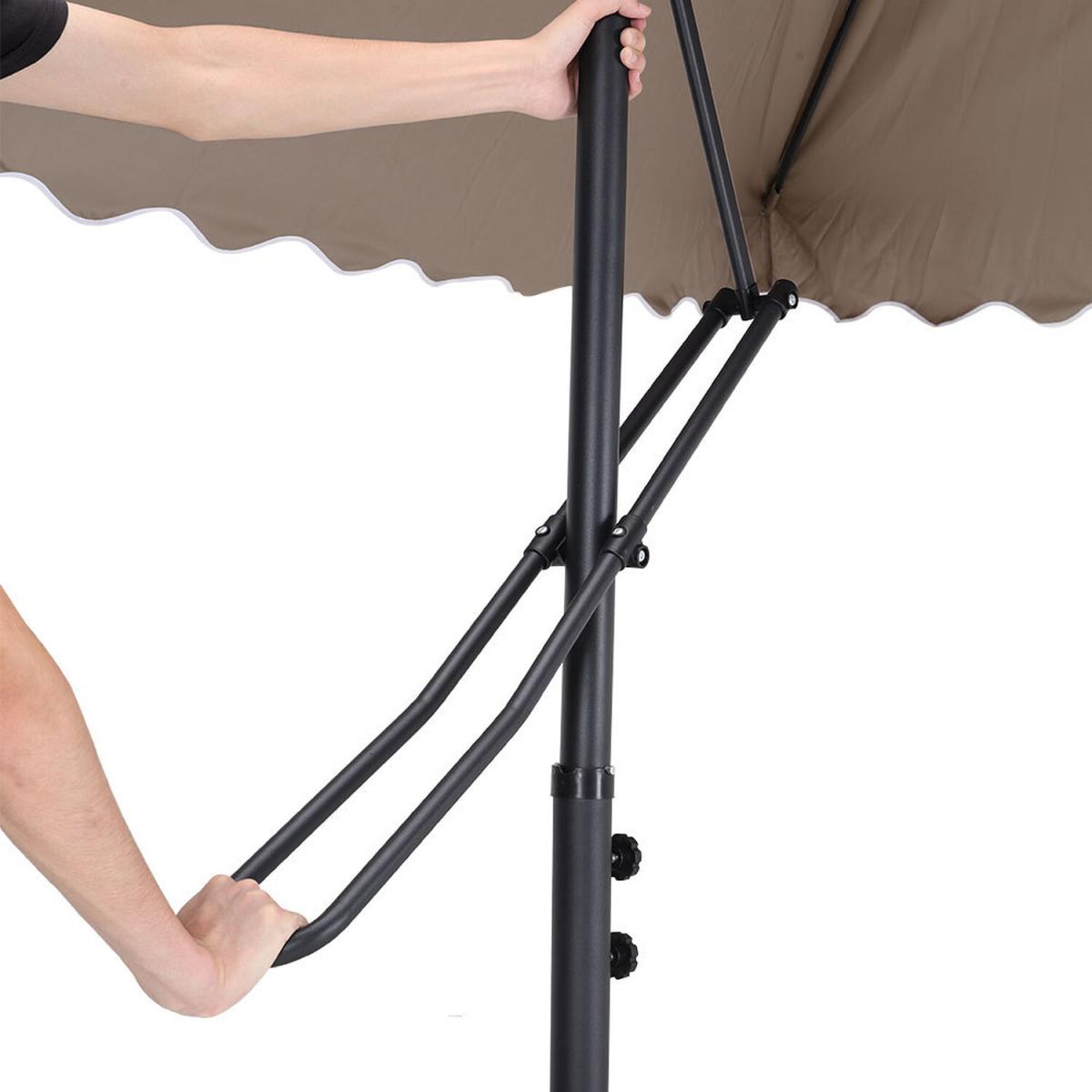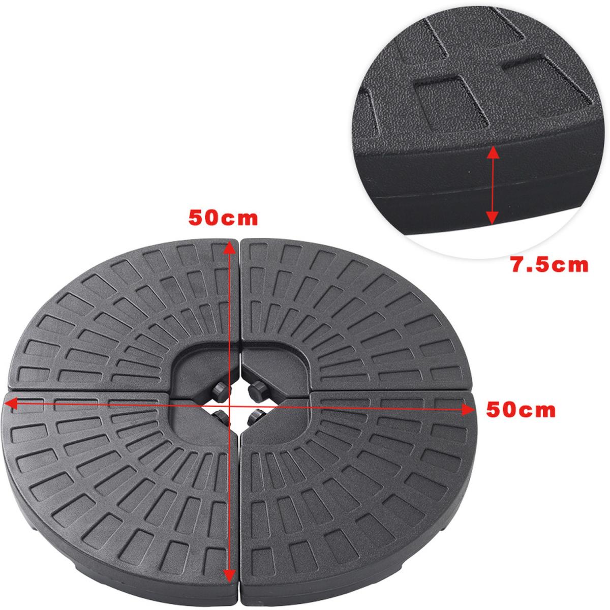 Building up your own shade in your garden is never too late for optimal enjoyment on hot days. Made of polyester, the canopy is UV and water-resistant, which protects you from harsh sunlight and sudden rain. This set comes with bases, which can weigh up to 66kg if you fill it with entirely sand, which is ample to support a single parasol. High-strength HDPE is adopted in this base to guarantee its excellent performance in weather and corrosion resistance. This parasol should be easy to assemble and is perfect to be placed in your garden or yard.